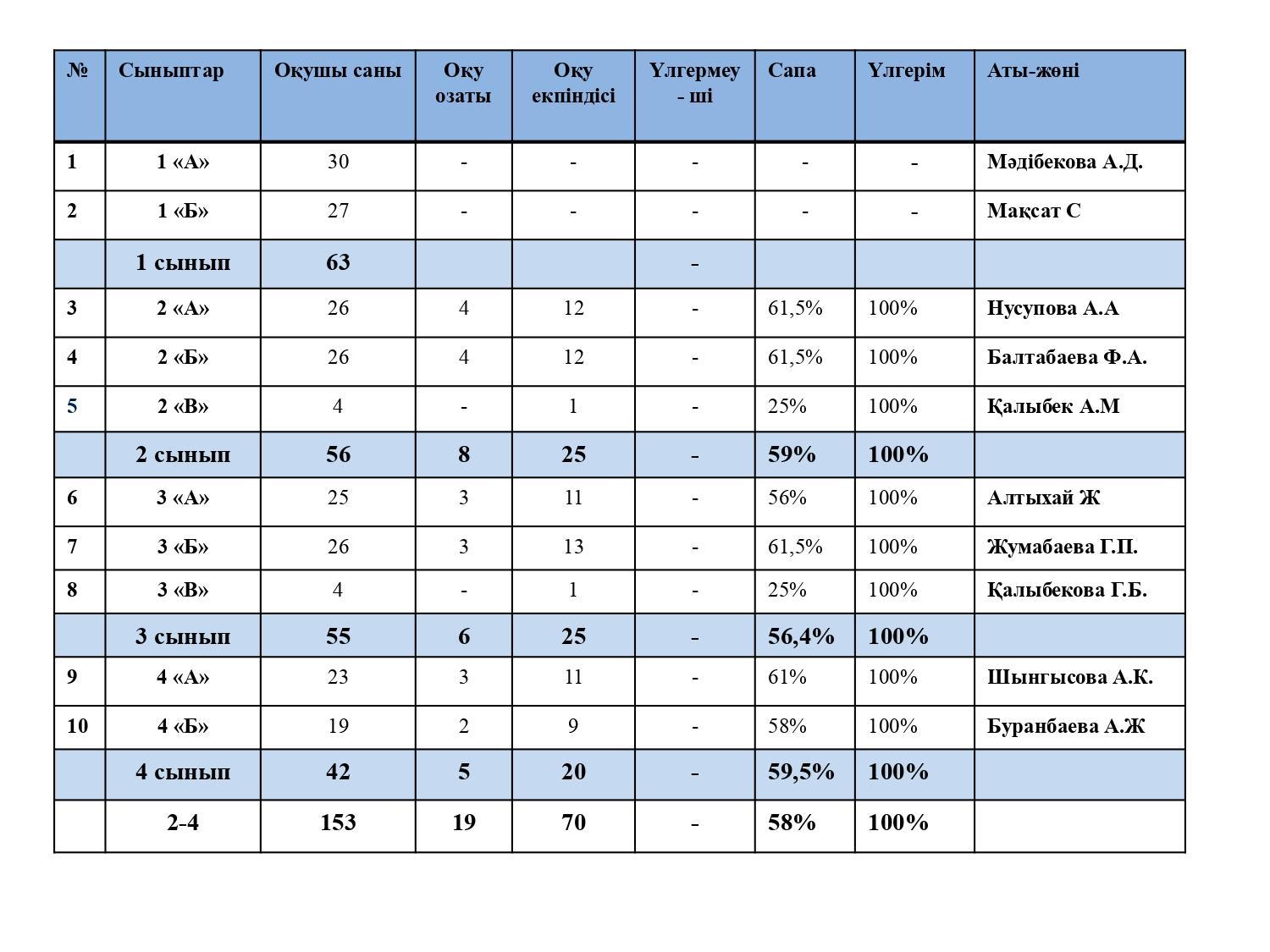 2023-2024 оқу жылындағы ІV тоқсан оқу үлгерімі мен білім сапасы