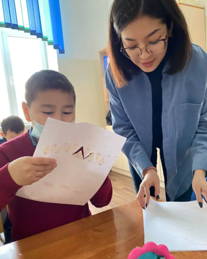 Мектеп логопеді Тұрсұмұрат Әлия Нұрланқызының жұмыс жоспарына сәйкес түзету сыныптарымен және инклюзивті сынып оқушыларымен жасалатын түзету жұмыстарындағы сәттерді назарларыңызға ұсынамыз. Сабақ жоспарына сәйкес тыныс алу жаттығулары, артикуляциялық жаттығулар және оқушының ұсақ моторикасын дамытуға бағытталған жұмыстар жасалынды.