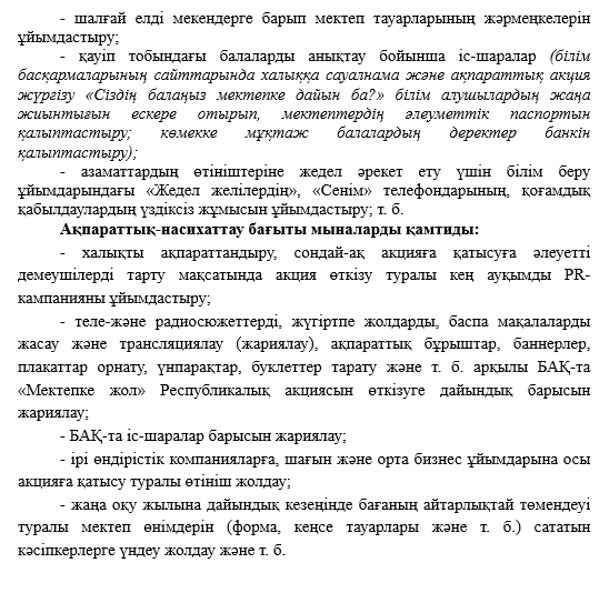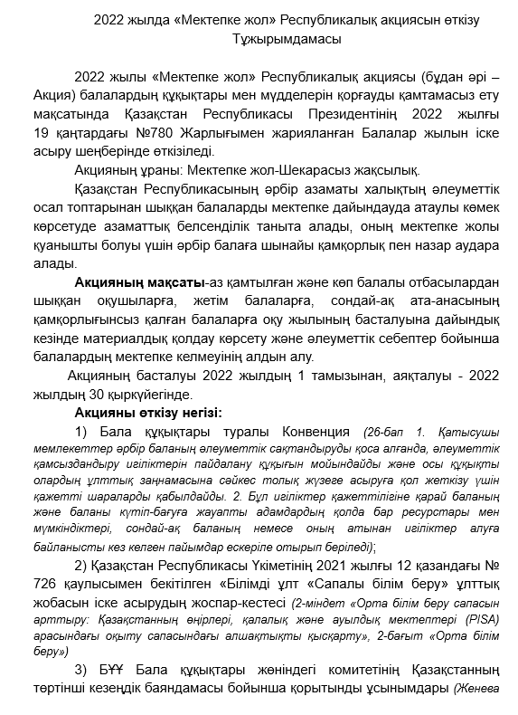 25 июль 2022 0 1 2 3 4 5 2022 жылда «Мектепке жол» Республикалық акциясын өткізу Тұжырымдамасы koncepcija-kaz.docx [32,91 Kb] (cкачиваний: 22) Посмотреть онлайн файл: koncepcija-kaz.docx