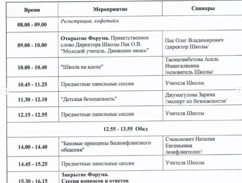 23 тамыз күні Алматы қаласы білім беру ұйымдары педагогтеріне арналған Шоқан Уәлиханов атындағы жекеменшік мектепте "Шебер ұстаз жолымен" республикалық форумы болып өтті. Аталған форумға мектебіміздің тарих пәнінің мұғалімі Төлегенов Абылай Көпбергенұлы қатысып, тәжірибе алмасып келді.