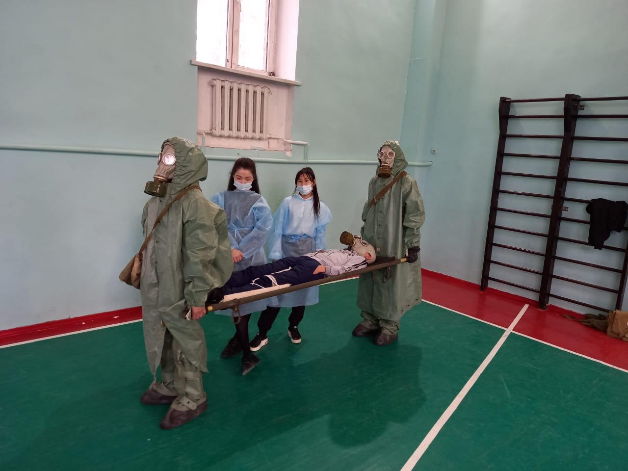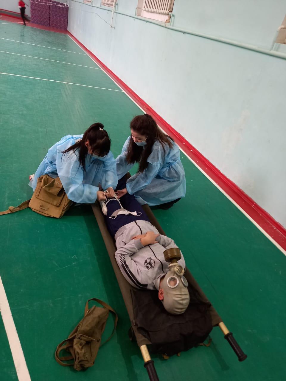 1 наурыз —Азаматтық қорғаныс күніне орай өткізілетін іс-шаралар жоспарына сәйкес мектебіміздің спорт залында спорттық эстафета болып өтті. Эстафетаға мектебіміздің 9 "А" кезекші сыныбы қатысты. Эстафета барысында олар противогаз кию, зардап шеккендерді тасымалдау, алғашқы медициналық көмек көрсету, алғашқы өрт сөндіру құралдарын қолдану жаттығуларын жасады.
