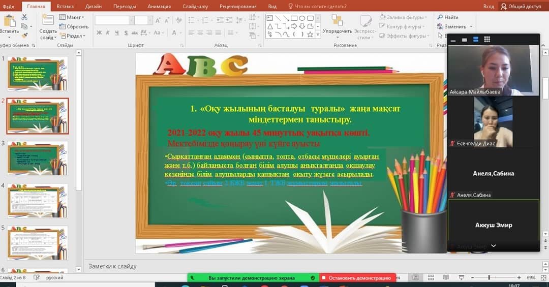 1. Оқу жылының басталуы туралы жаңа мақсат-міндеттермен танысу.