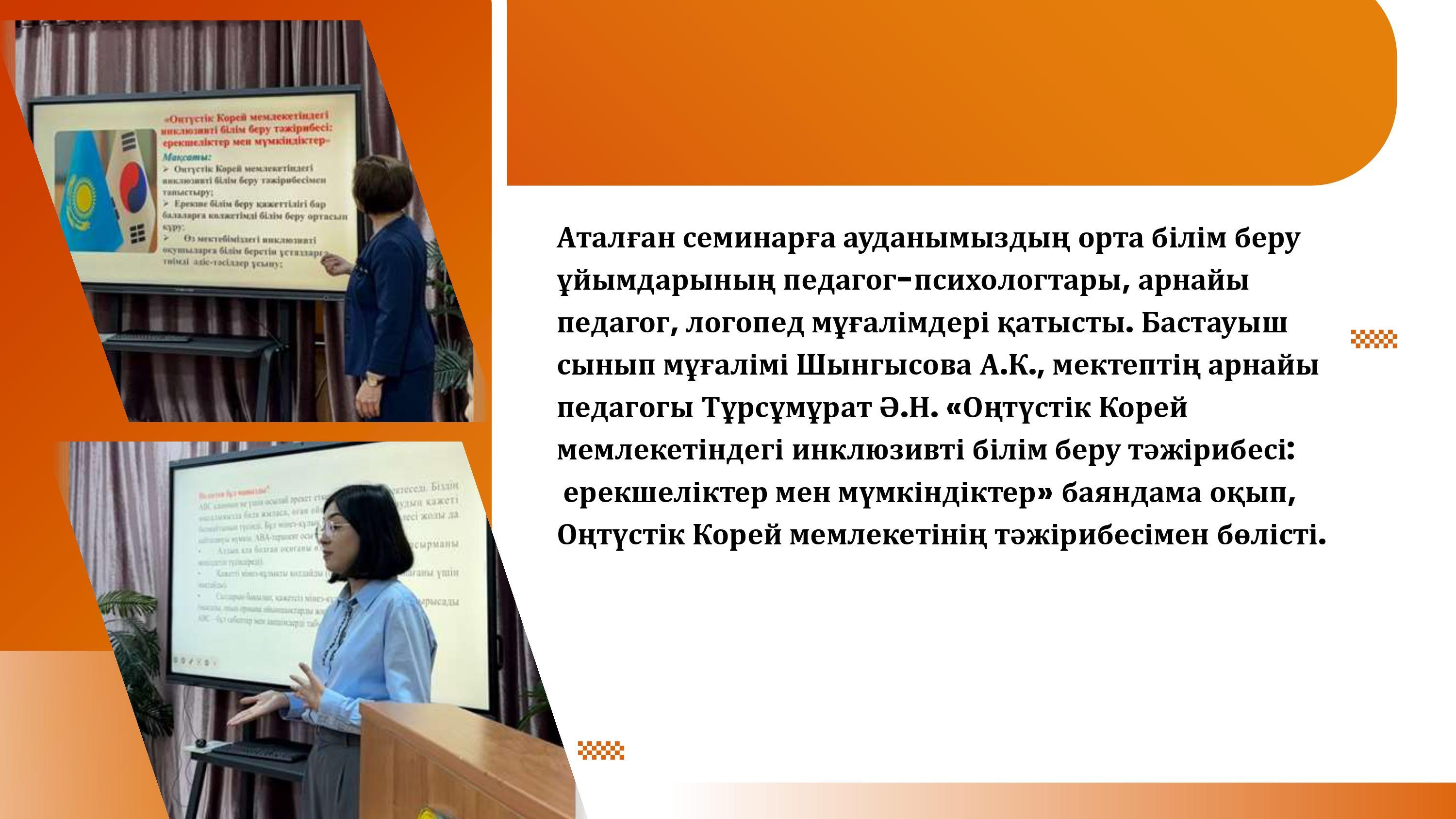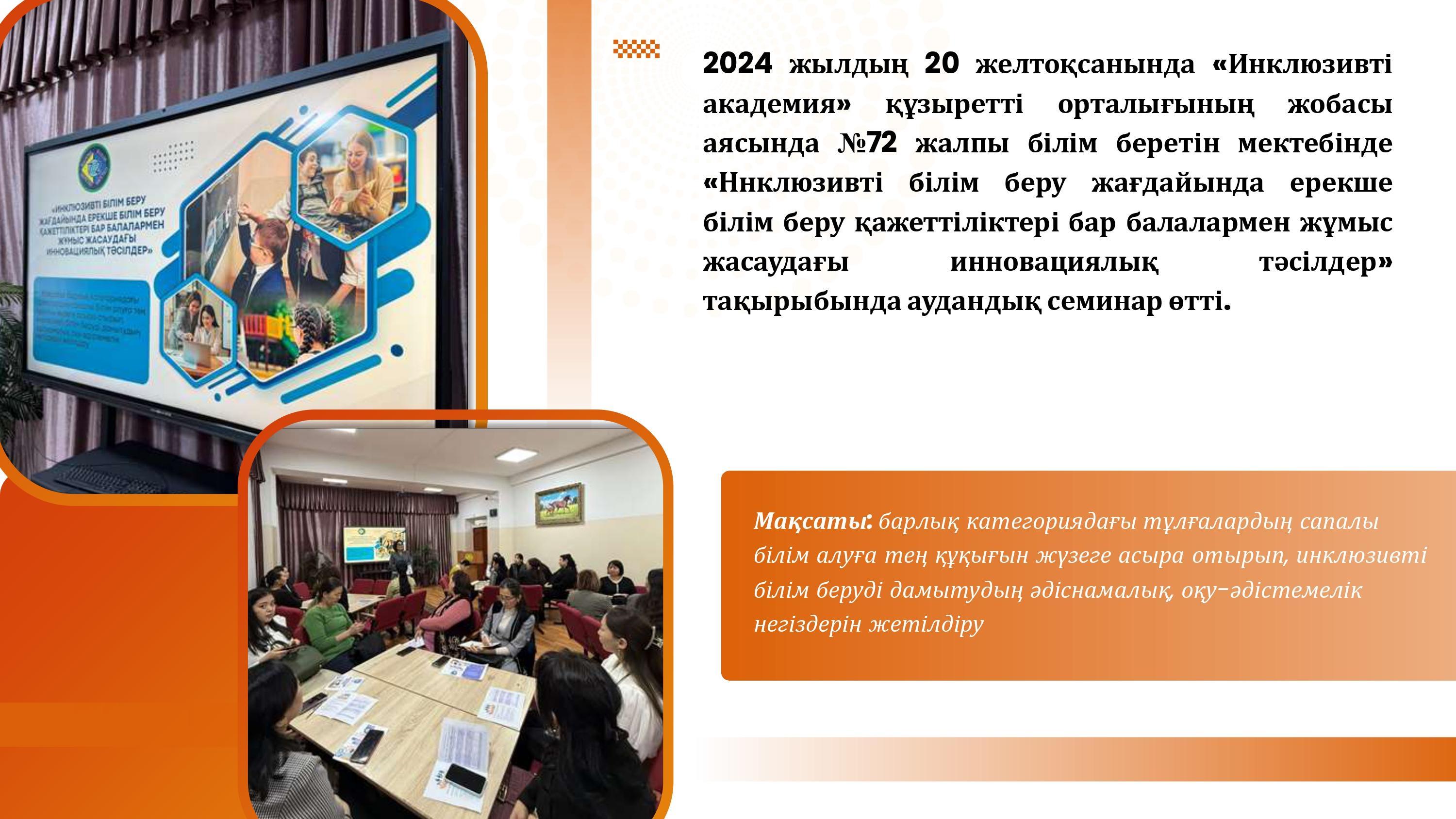 24 декабрь 2024 0 1 2 3 4 5 «ИНКЛЮЗИВТІ БІЛІМ БЕРУ ЖАҒДАЙЫНДА ЕРЕКШЕ БІЛІМ БЕРУ ҚАЖЕТТІЛІКТЕРІ БАР БАЛАЛАРМЕН ЖҰМЫС ЖАСАУДАҒЫ ИННОВАЦИЯЛЫҚ ТӘСІЛДЕР» Семинар