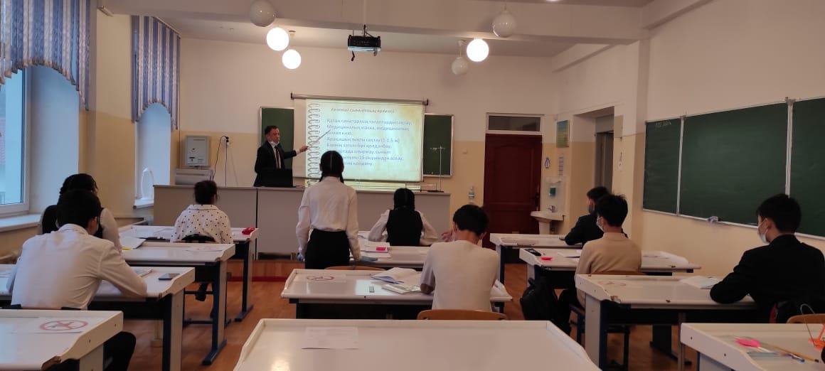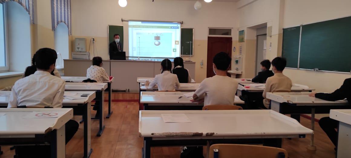 9 ақпан күні "Барлық әлем сөйлейді, нақты ғылым тілінде" атты Жаратылыстану пәндері әдістемелік бірлестігінің он күндігі аясында мектебіміздің "педагог-сарапшы" біліктілік санатындағы физика пәнінің мұғалімі Күзенбаев Жасұлан Кәрімұлының 9 "А" кезекші сыныбымен (ІІІ топ) "Математикалық және серіппелі маятниктердің тербелістері" тақырыбындағы ашық сабағы болып өтті. Қатаң санитарлық талаптар сақталған ашық сабақта "Антисептик сұрақтары" әдісі және тақырыпқа сай жаттығу есептері шығарылды. Сонымен қатар, сабақ үдерісінде оқушылар "Phet colorado" бағдарламасы арқылы математикалық маятниктің тербеліс периодын есептеу үшін виртуалды зертханалық жұмыстар жасады. "Физиктер-лириктер" атты сергіту сәтінде 9 ақпан — ақиық ақын Мұқағали Мақатаевтың туған күніне орай оқушылар ақынның тербеліске қатысты өлеңін оқыды. Сабақ соңында оқушылар "Instagram" әдісі арқылы кері байланыстар берді. Аталған ашық сабақ өз мақсатына жетті.