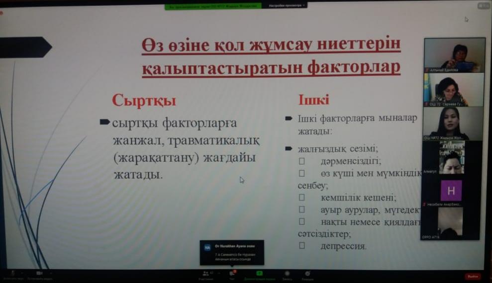 27 ақпан күні zoom платформасында қашықтан "Директорлық сенбі—ата-ана үні" атты ата-аналар жиналысы болып өтті. Жиналысқа 5-7 сынып ата-аналары қатысып, көкейде жүрген сауалдарына жауаптарын алды. Жиналыста мектеп психологы Жолдасова Жадыра Муратовна психологиялық тұрғыдан кеңес берді. Жиналысты мектеп директоры Сариева Гүлзира Молдаб