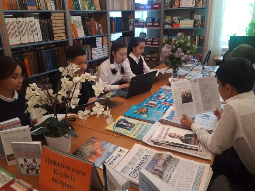 Құрметті инстаоқырмандар! Сіздердің назарларыңызға мектеп кітапханасының бір күнін ұсынамыз. Бүгін "Балалар жылы" аясында мектебіміздің 7 "А" сынып оқушылары мектеп кітапханасына келіп, ондағы кітап көрмесімен, жаңа түскен әдебиеттермен және мектеп мұғалімдерінің еңбектерімен танысты.