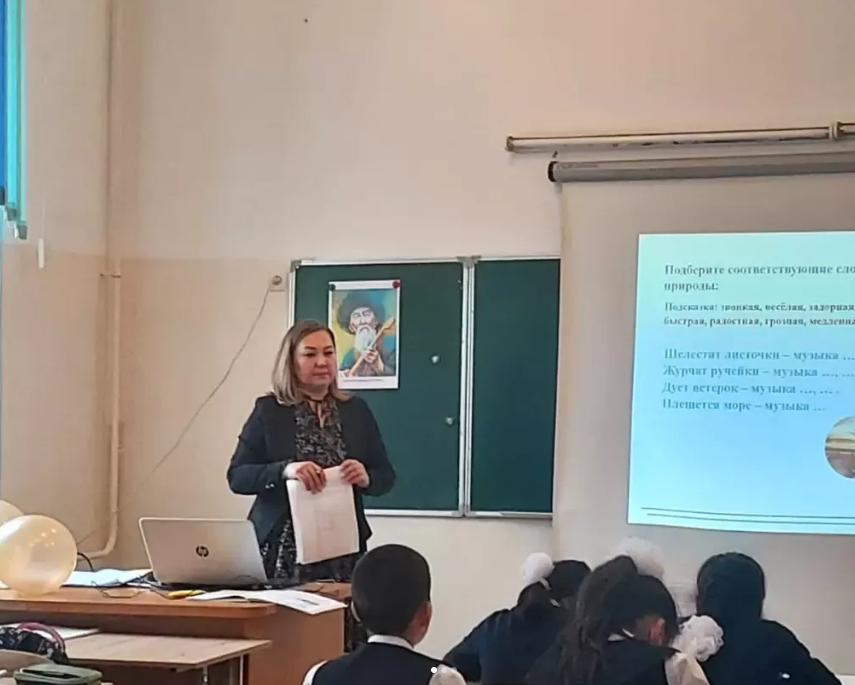 25 қаңтар күні қоғамдық- гуманитарлық пәндер әдістемелік бірлестігінің онкүндігі аясында орыс тілі пәнінің мұғалімі Утесбаева Бибигуль Кажимовнаның 3 "А" сыныбымен "Какая музыка в природе?" тақырыбында ашық сабағы болып өтті. Сабақ үдерісінде оқушылар табиғаттағы әуендер жайлы мағұлматтар алды. Сонымен қатар жаттығу жұмыстарын орындап, кері байланыстар берді.