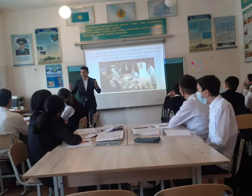 26 қаңтар күні қоғамдық- гуманитарлық пәндер әдістемелік бірлестігінің онкүндігі аясында тарих пәнінің мұғалімі, педагог- модератор Төлегенов Абылай Көпбергенұлының 9 "Ә" сыныбымен "Отбасы мүшелерінің құқықтары мен міндеттері" тақырыбындағы ашық сабағы болып өтті. Сабақ үдерісінде оқушылар туыстық қатынастарды, үш жұртпен танысып, олардың құқықтары мен міндеттері жайлы мәліметтер алды. Видеоролик тамашалау арқылы өз ойларын ортаға салды. Сабақ соңында кері байланыс беріліп, сабақ өз мақсатына жетті.