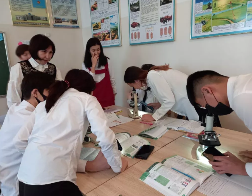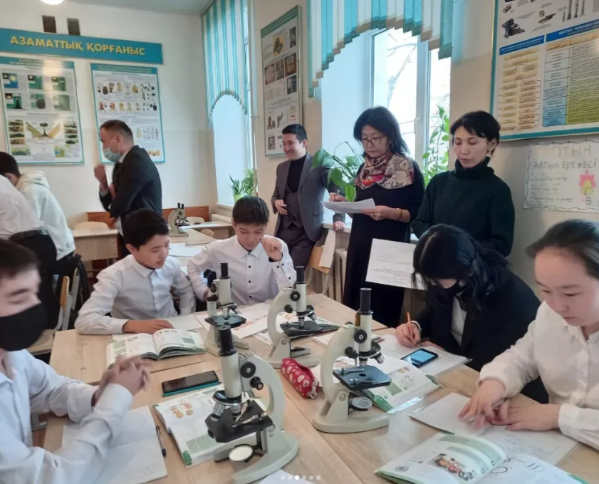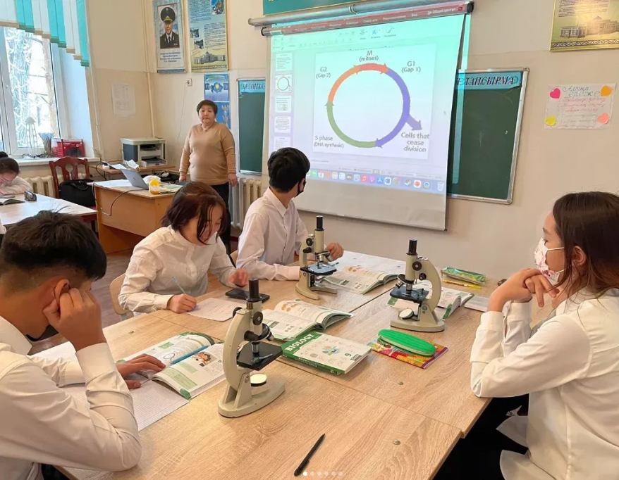 8 ақпан күні Lesson Study (Caбақты зерттеу) бойынша биология пәнінің мұғалімі, педагог-зерттеуші Садыкова Озипа Аскаровнаның 9 "Б" сыныбына "Митоз. Митоз фазалары. Зертханалық жұмыс "Пияз тамыр ұшындағы жасушалардан митозды зерттеу" тақырында зерттеу сабағы болып өтті. Сабақ үдерісінде оқушылар митоздың фазалары туралы қазақ және ағылшын тілдеріндегі видеокөрсетілімді тамашалап, микроскоппен зертханалық жұмыстар жасады. Ағылшын тілінде жаңа сабақтың терминдерімен танысты. Зерттеу сабағына мектеп әкімшілігі мен зерттеу тобының мүшелері қатысты. Зерттеу сабағы жоғары деңгейде өтіліп, өз мақсатына жетті.