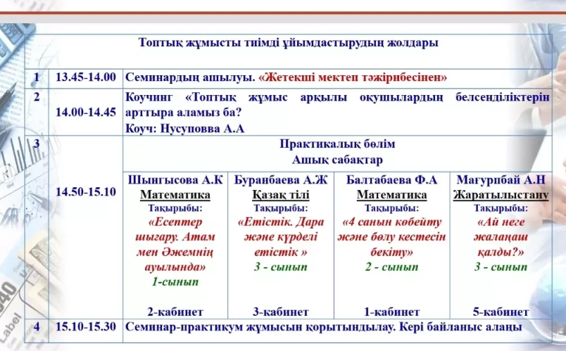 "Топтық жұмысты тиімді ұйымдастырудың жолдары" тақырыбында семинар-практикум болып өтті.