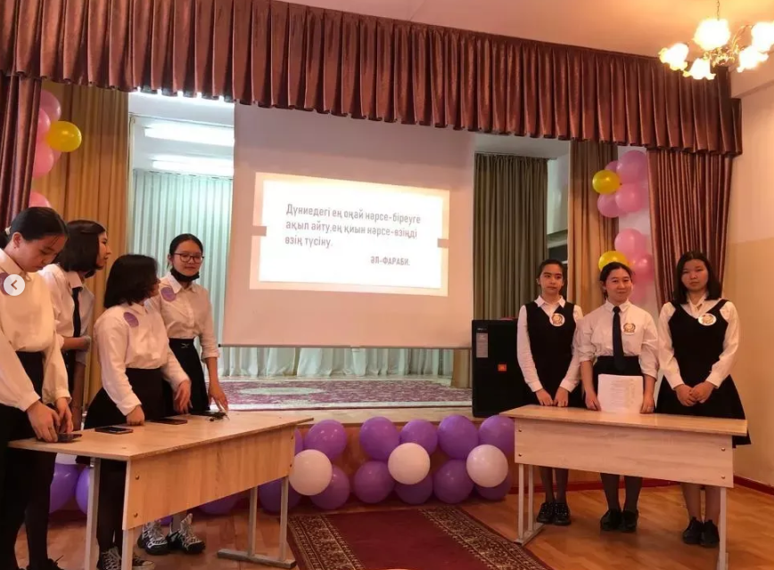 5 мамыр күні мектептің мәжіліс залында 7 "А" және 8 "А" сыныптары арасында дебат болып өтті. Тақырыбы: "Мектеп қабырғасында өзін-өзі тану пәнін оқыту қаншалықты қажет? ". Аталған тақырып бойынша 7 "А" сыныбының "Парасат" тобы және 8 "А" сыныбының " Amanat" топтары қатысып, өзара пікір-сайыс өткізді. Дебатты ұйымдастырған мектебіміздің қазақ тілі мен әдебиеті пәнінің мұғалімі Хуан Жадыра.