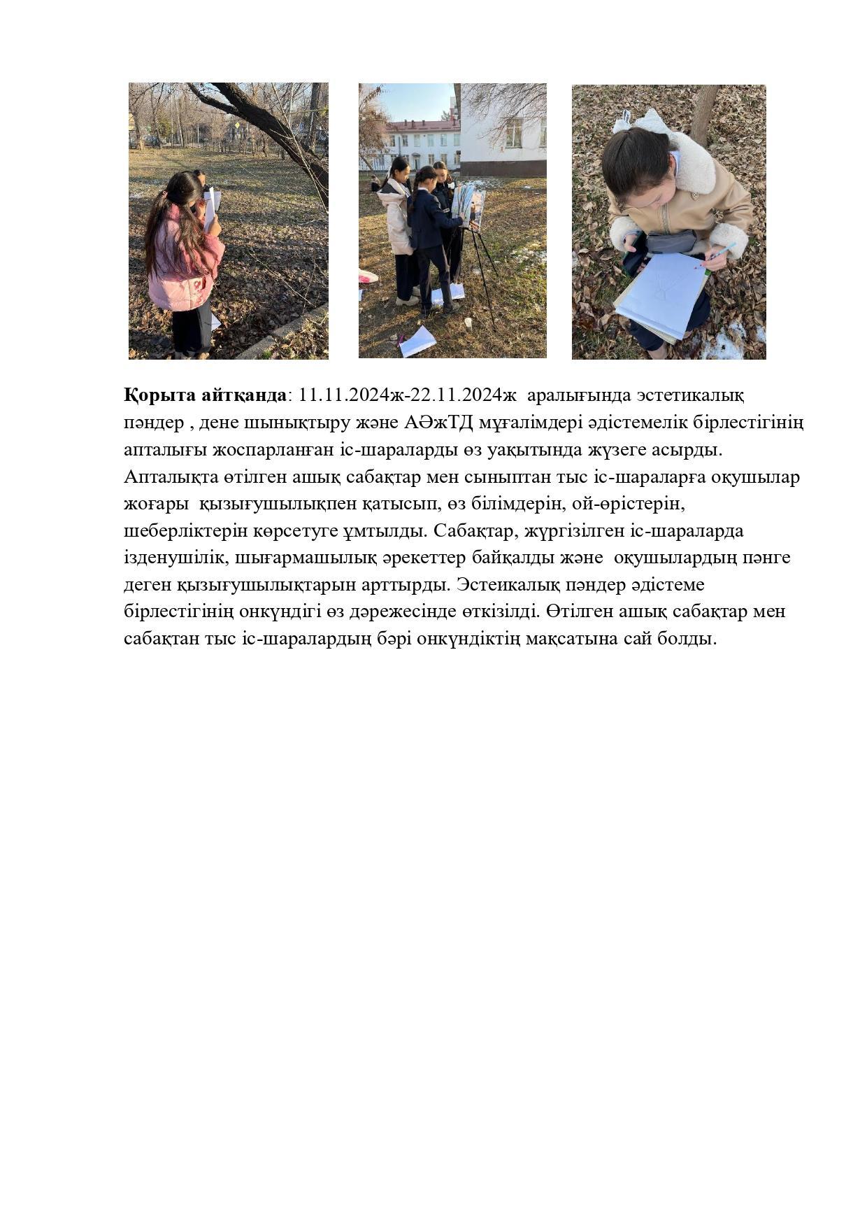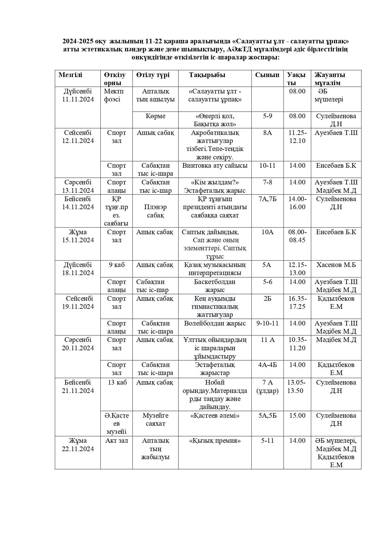 22 ноябрь 2024 0 1 2 3 4 5 эстетикалық пәндер және дене шынықтыру, АӘжТД мұғалімдері әдіс бірлестігінің апталығы
