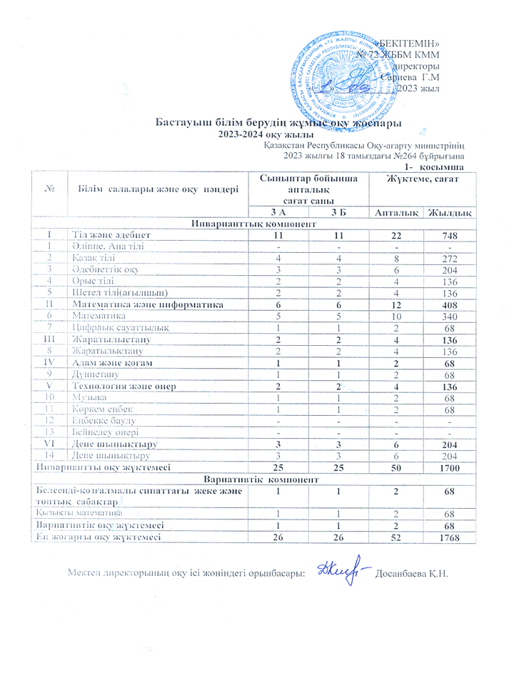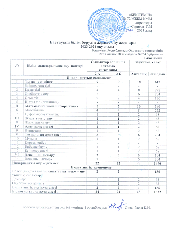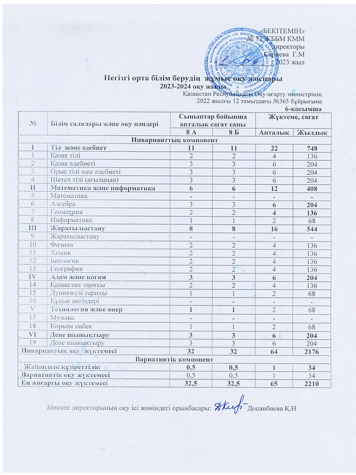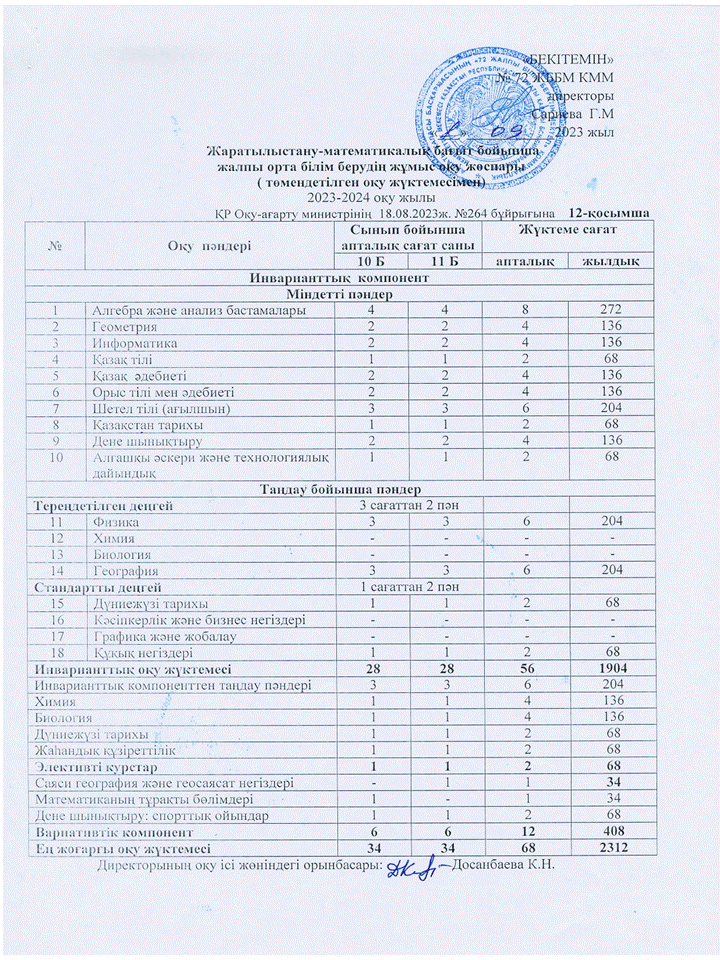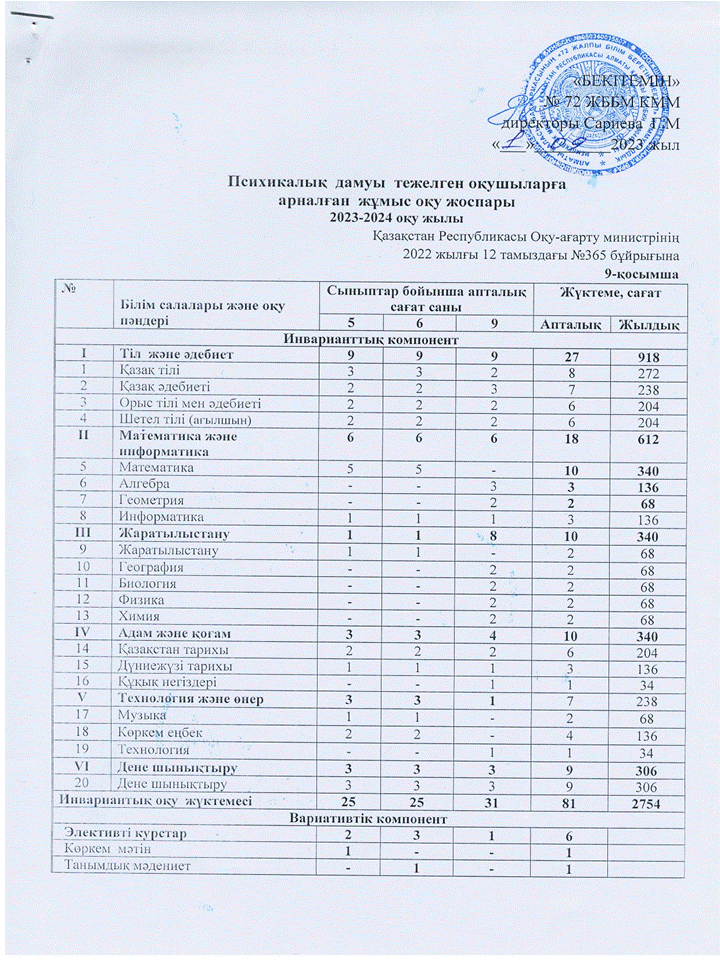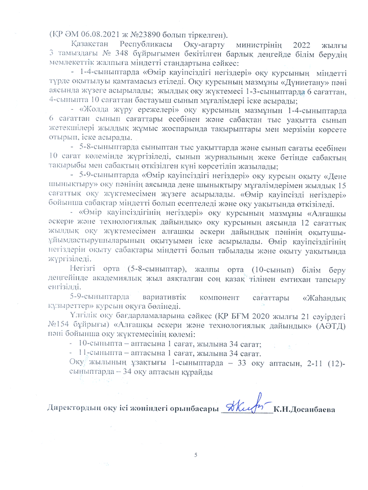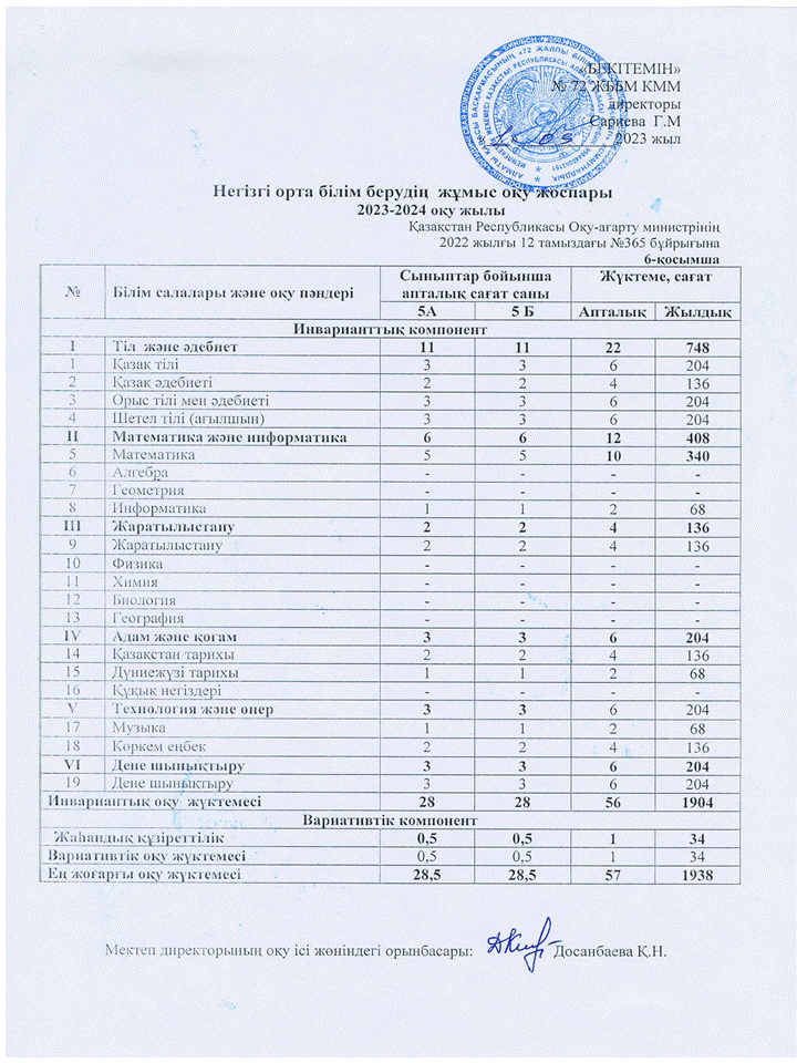 » 2023-2024 оқу жылына арналған ЖҰМЫС ОҚУ ЖОСПАРЫ
