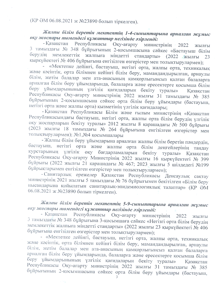 2023-2024 оқу жылына арналған ЖҰМЫС ОҚУ ЖОСПАРЫ