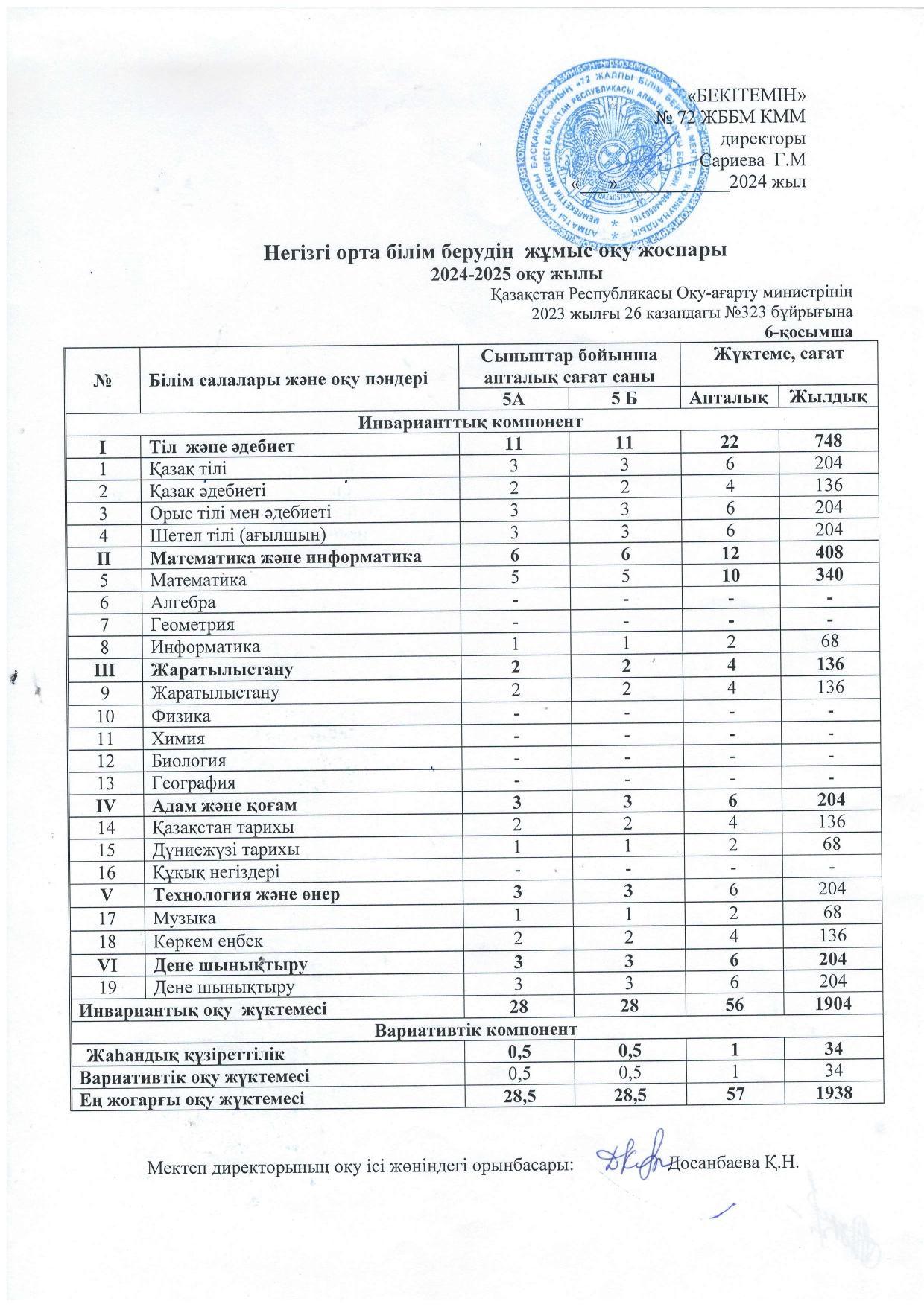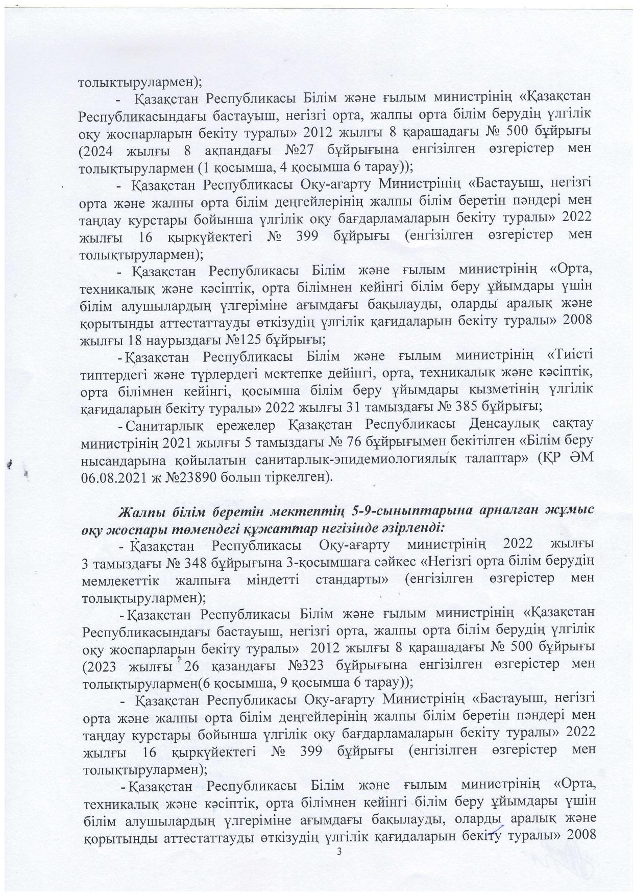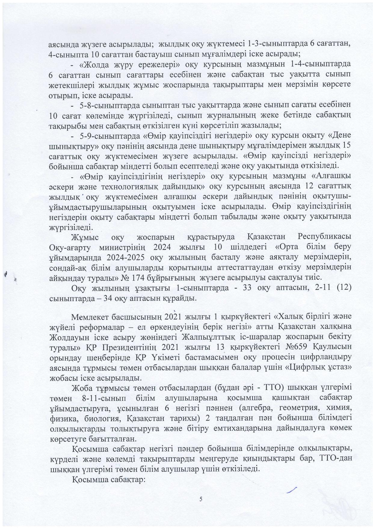 » 2024-2025 оқу жылына арналған ЖҰМЫС ОҚУ ЖОСПАРЫ