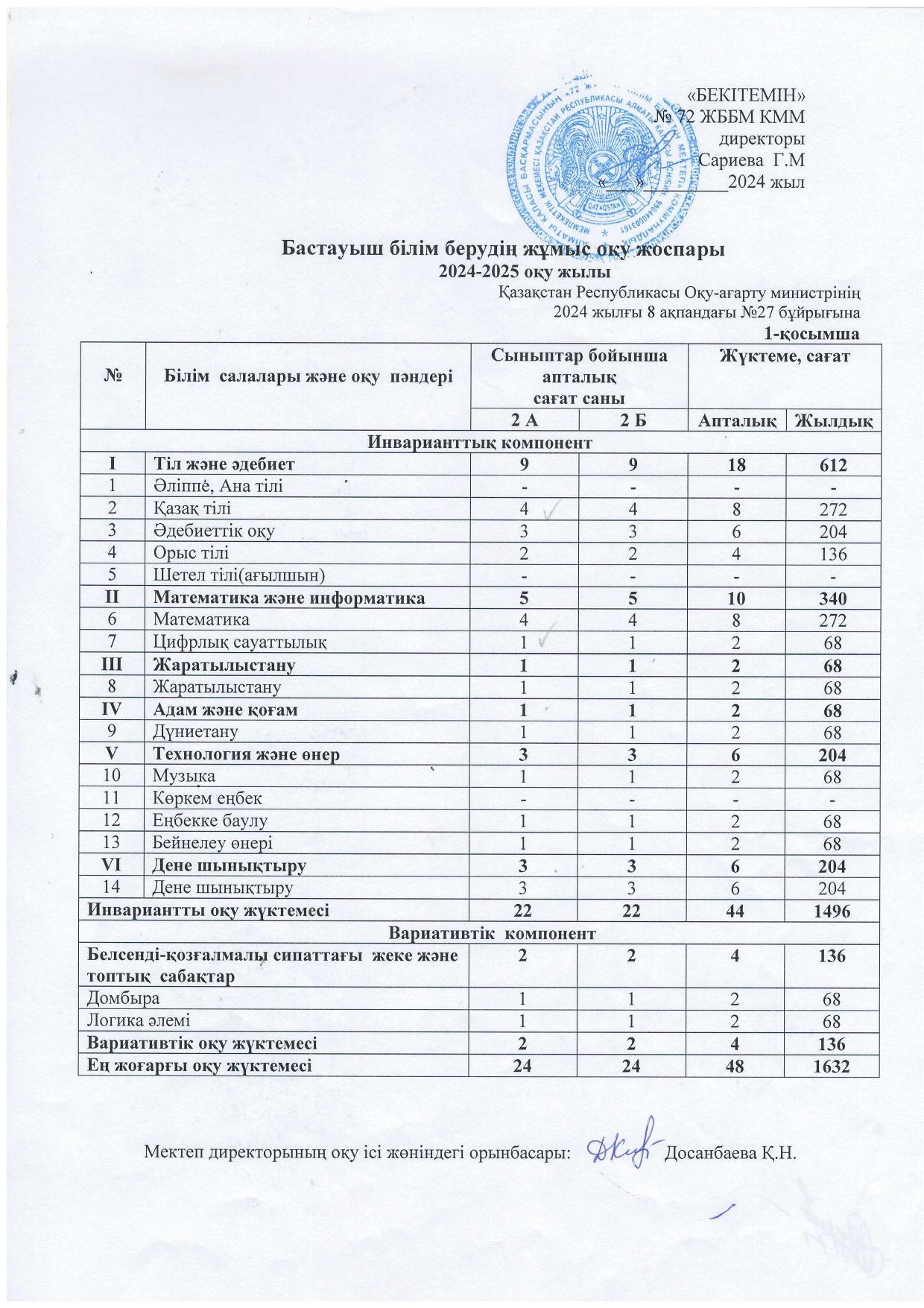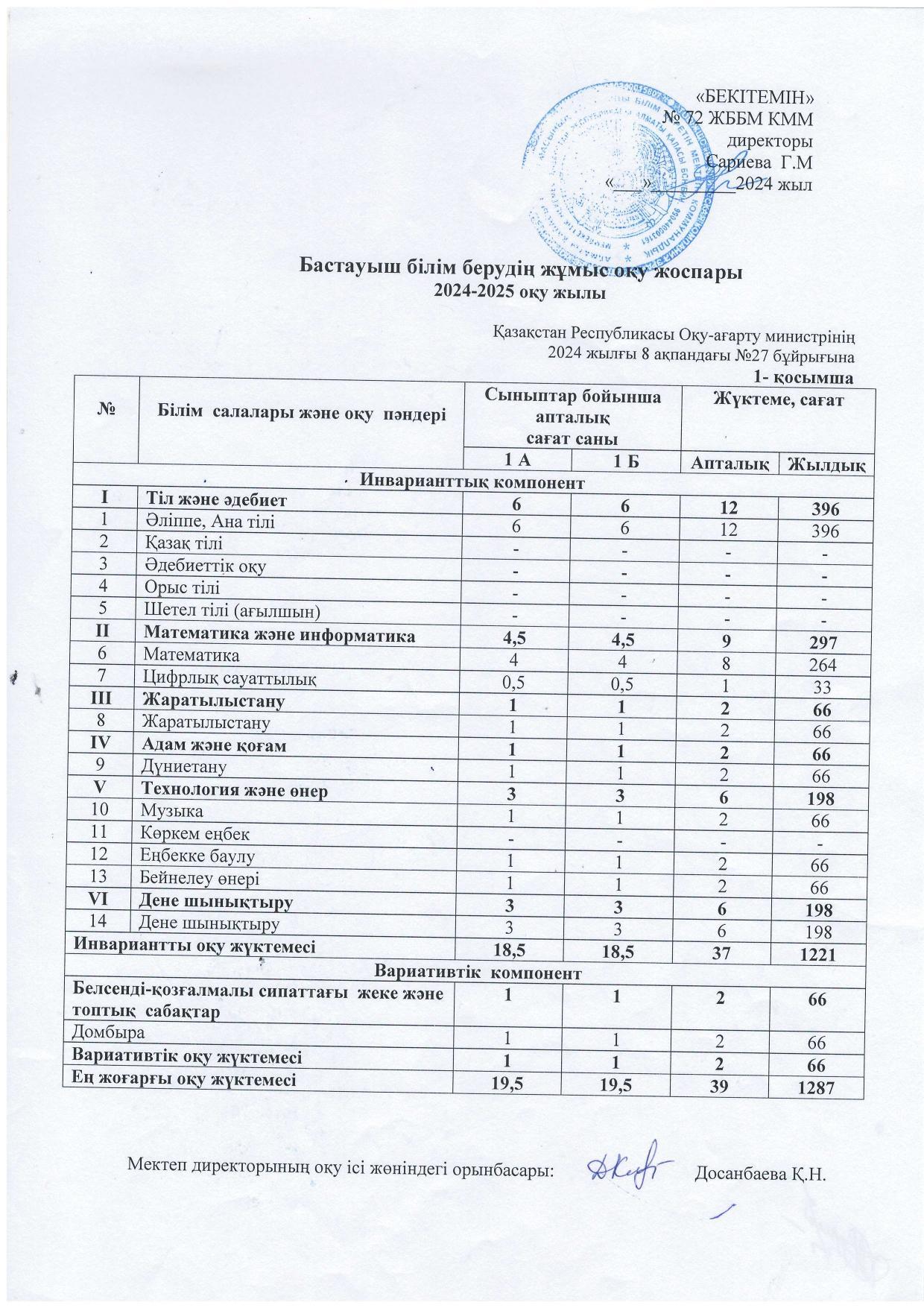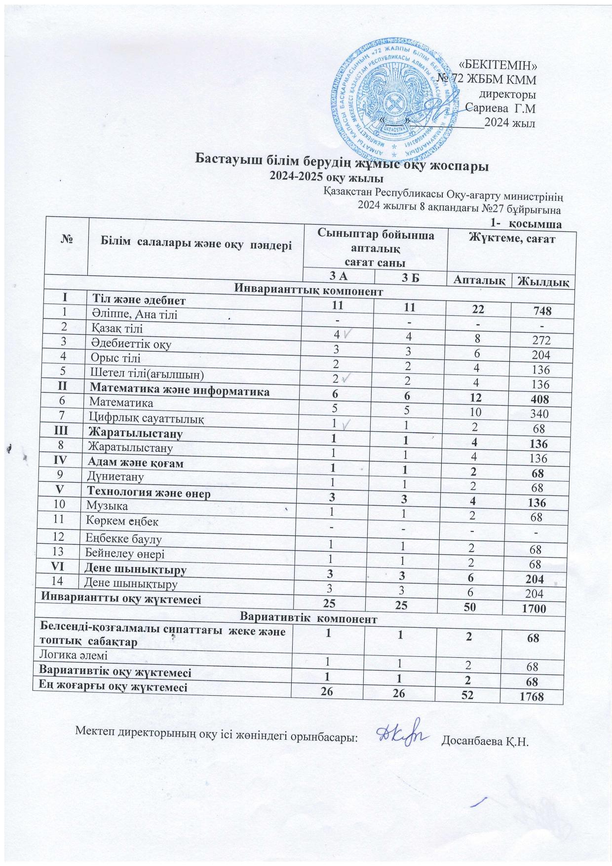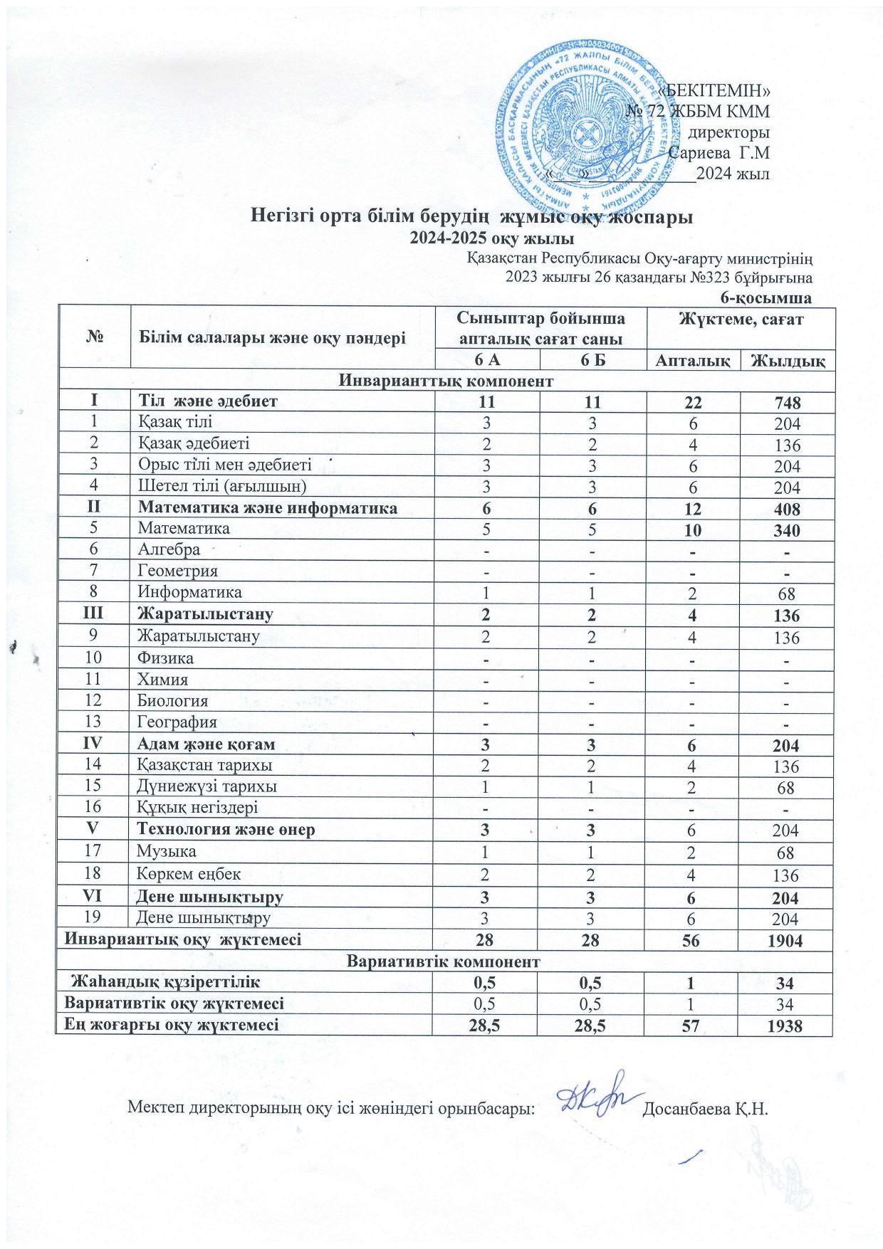 » 2024-2025 оқу жылына арналған ЖҰМЫС ОҚУ ЖОСПАРЫ