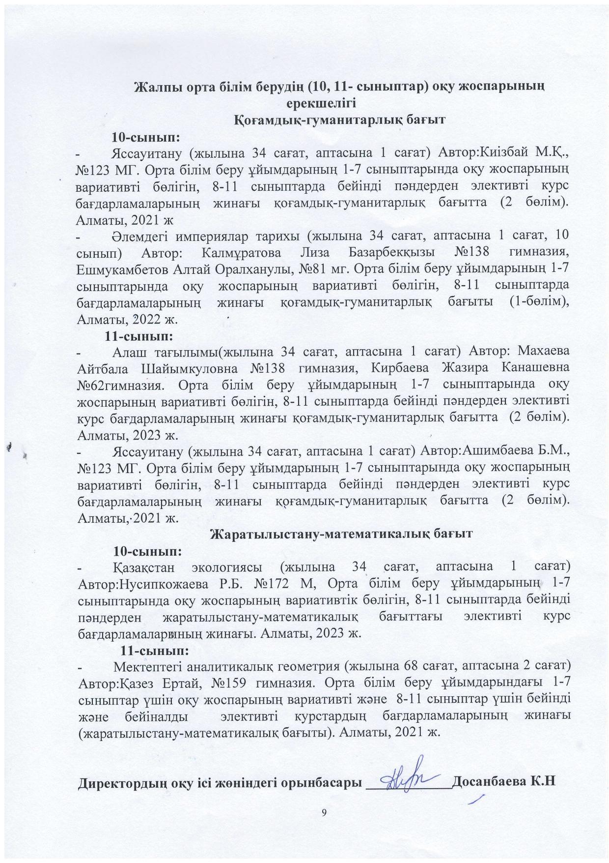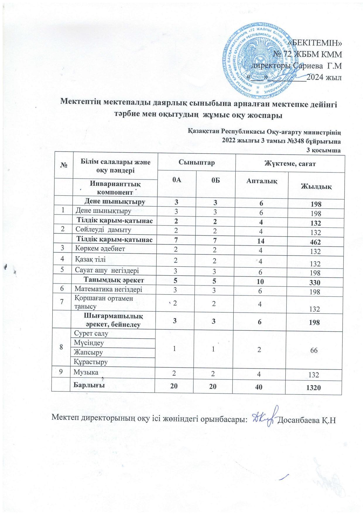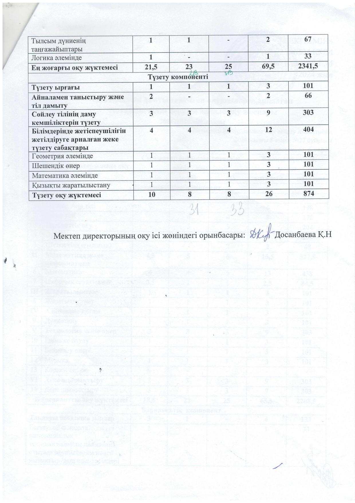 2023-2024 оқу жылына арналған ЖҰМЫС ОҚУ ЖОСПАРЫ