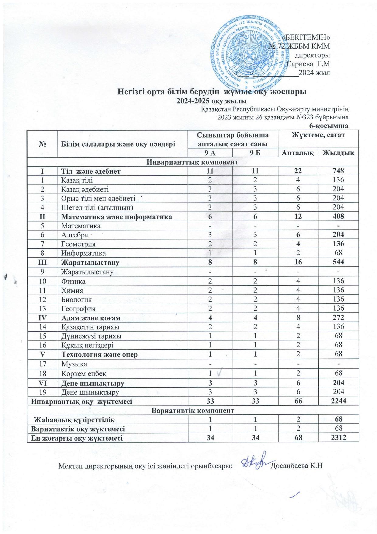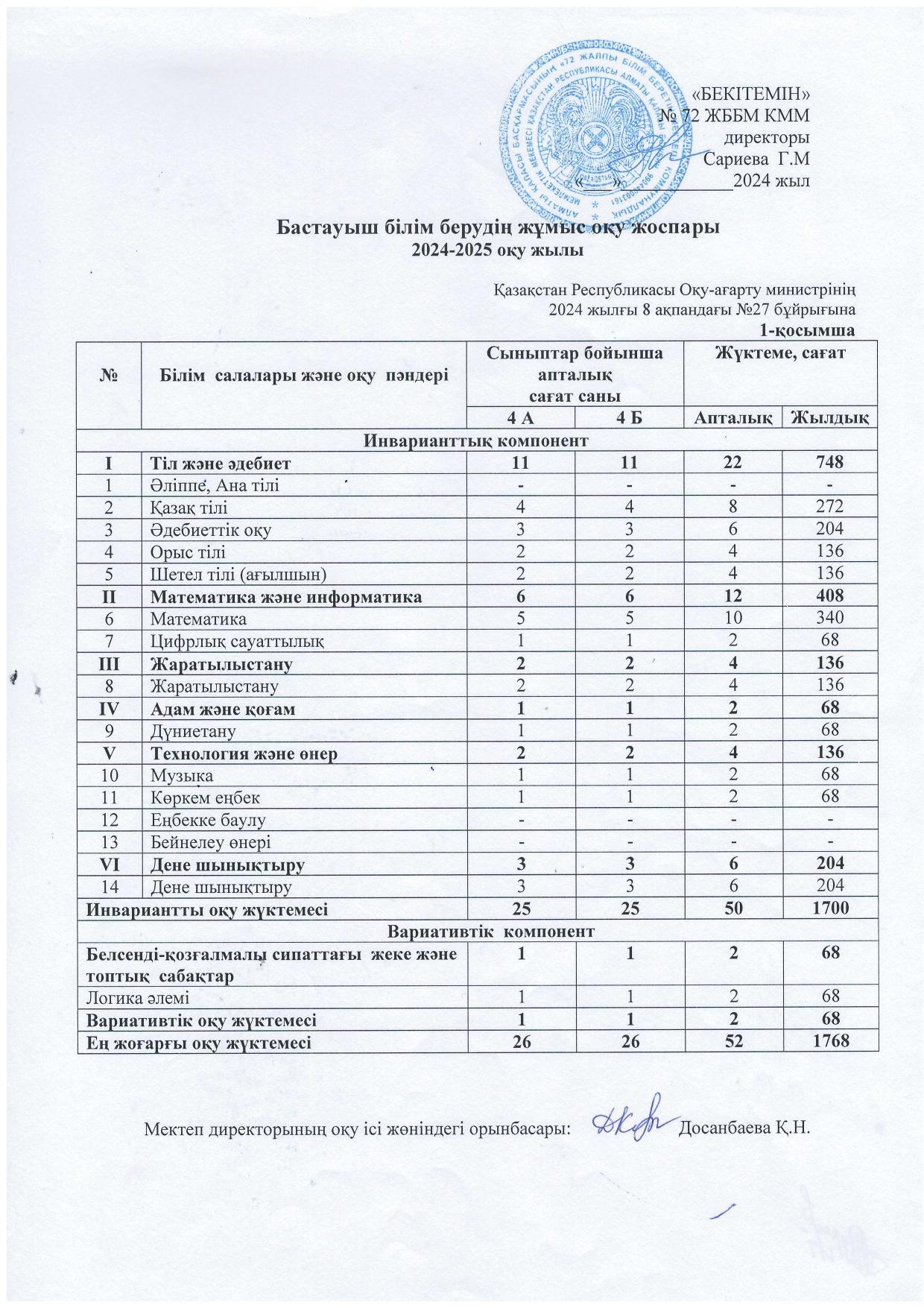 2024-2025 оқу жылына арналған ЖҰМЫС ОҚУ ЖОСПАРЫ