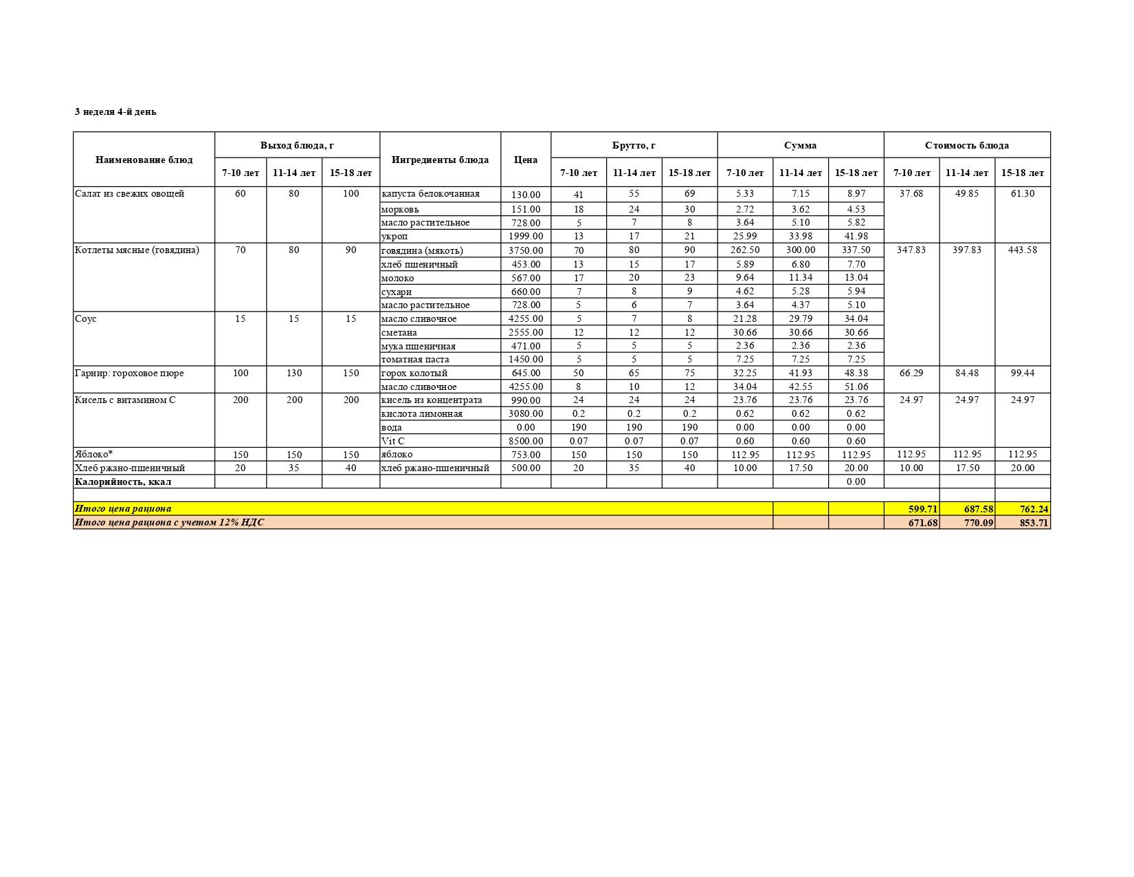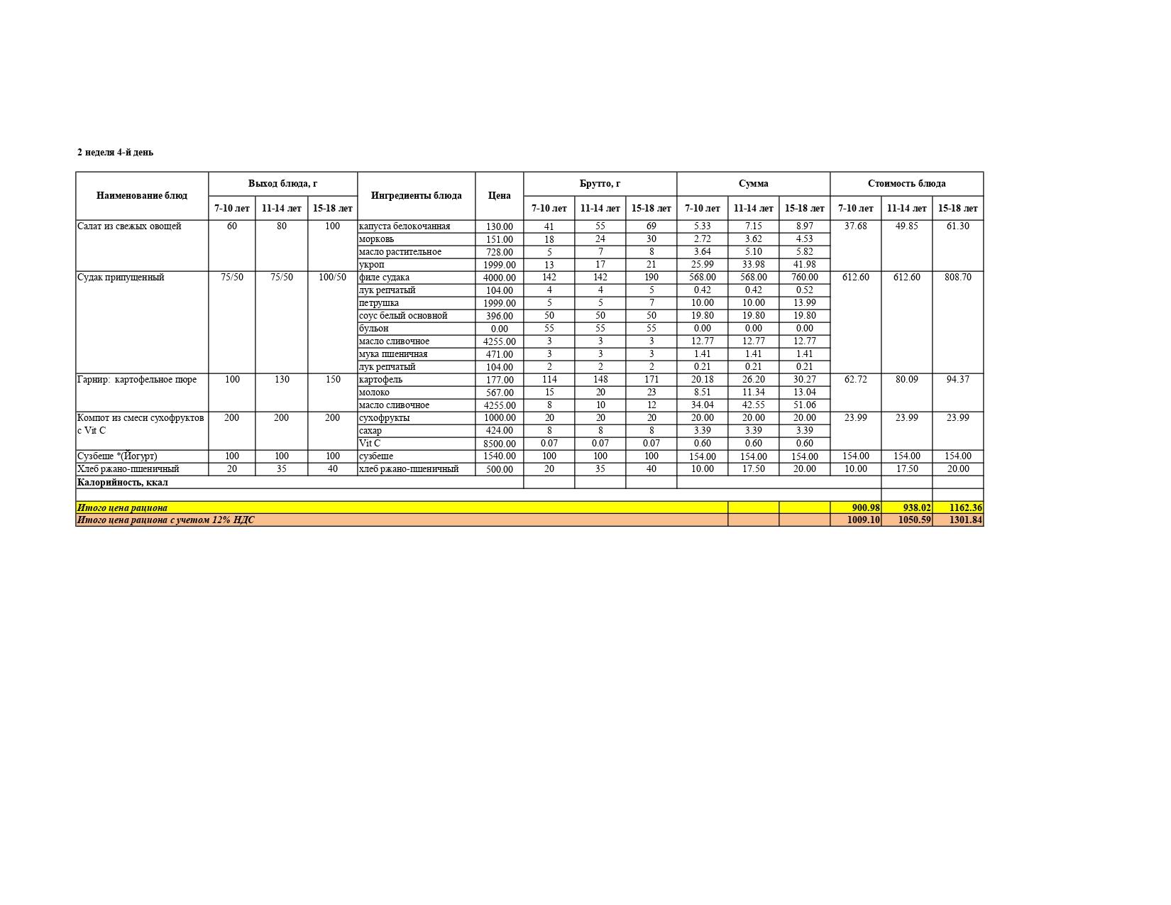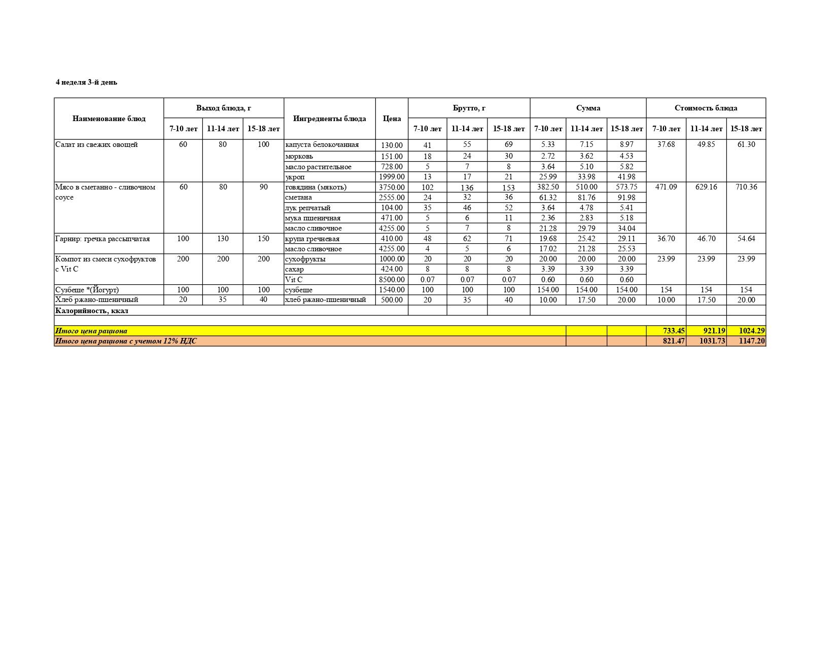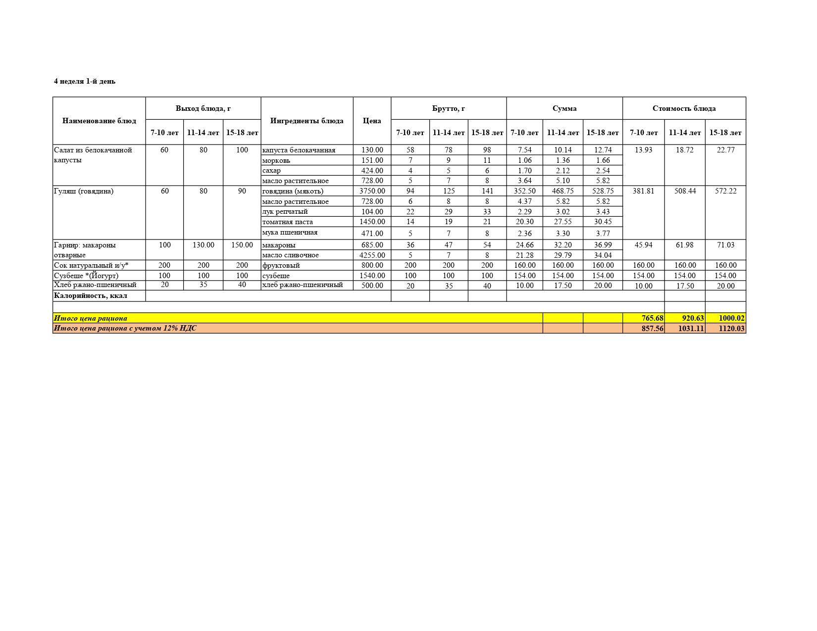Четырехнедельное меню блюд для оргназиции бесплатного питании обучающихся в организациях среднего образования за счет бюджетных средтсв зима-весна2024