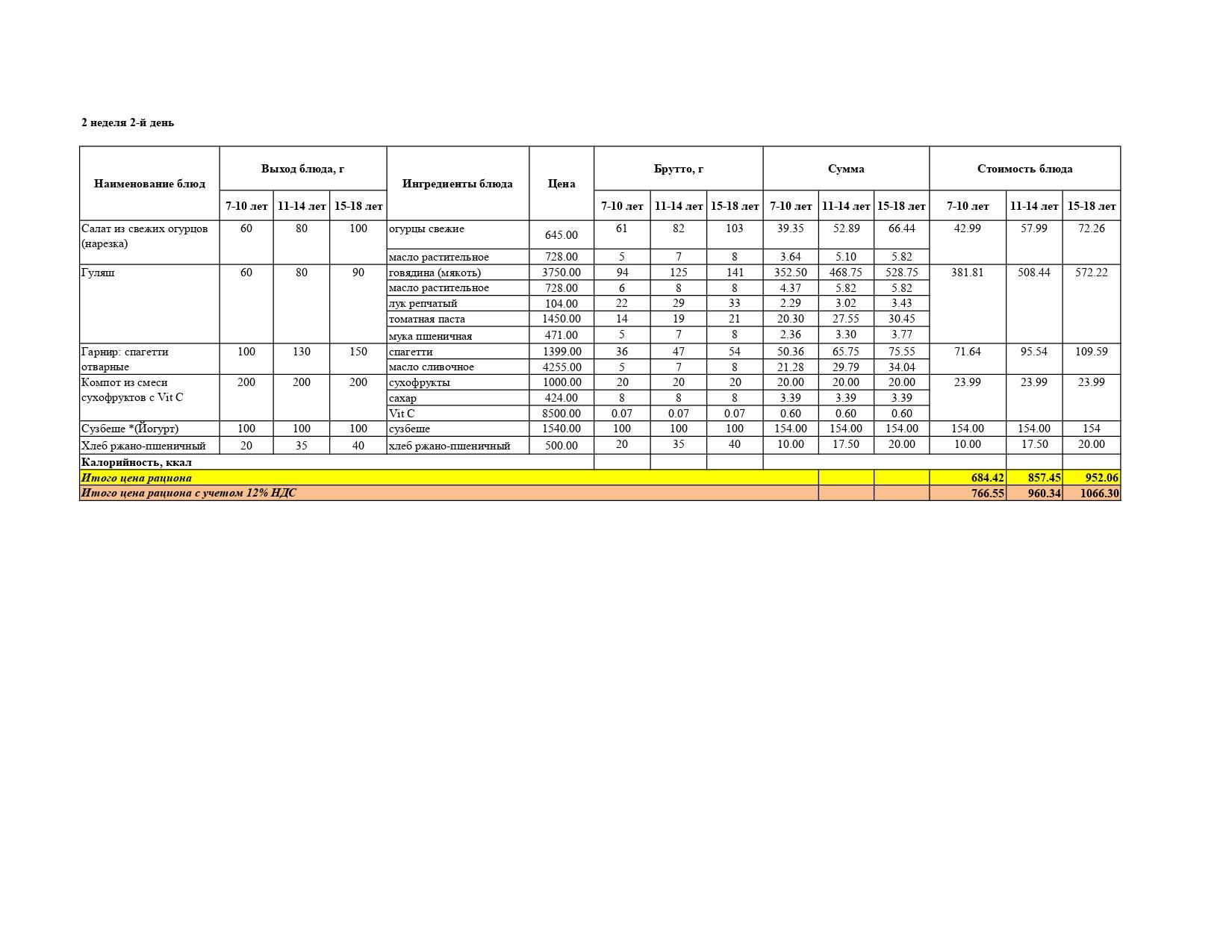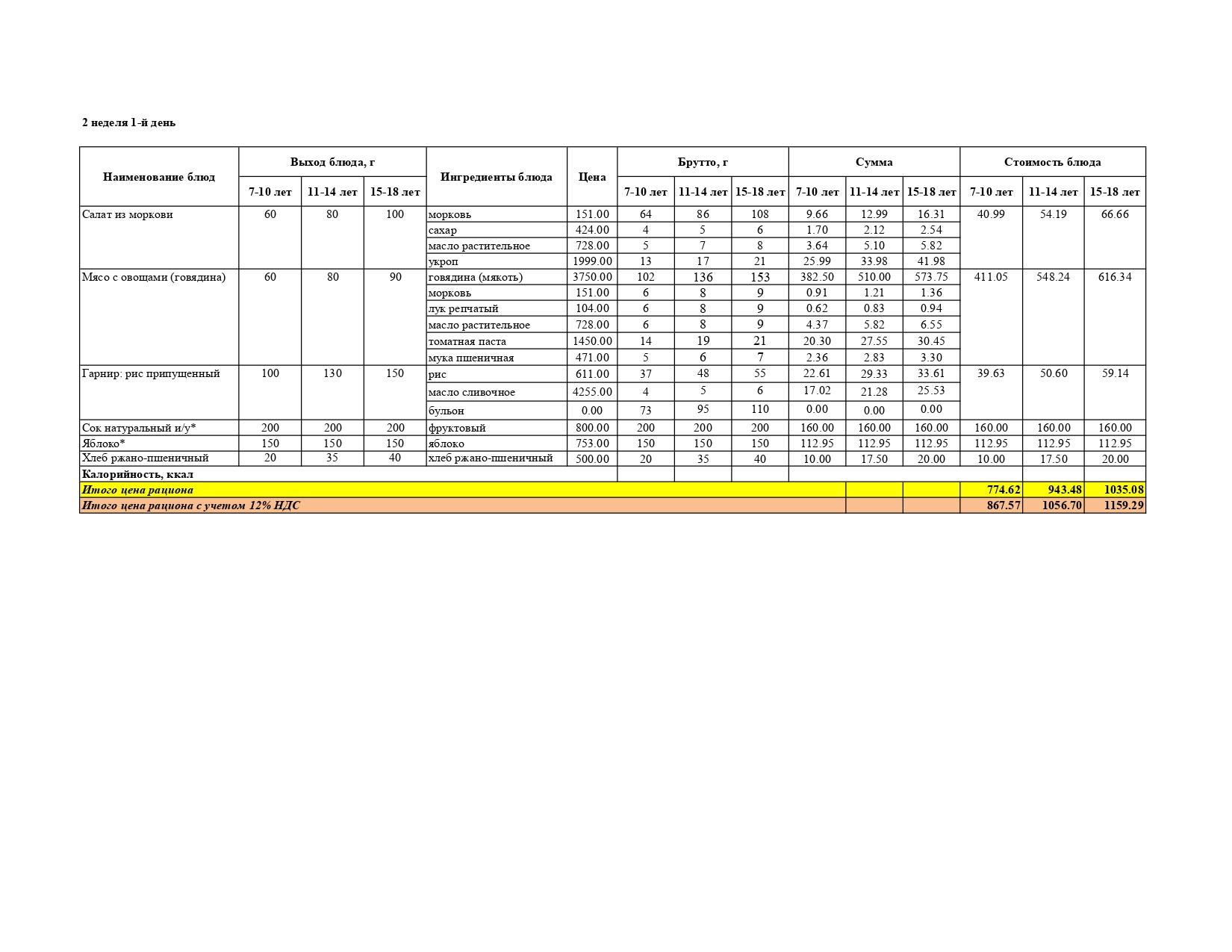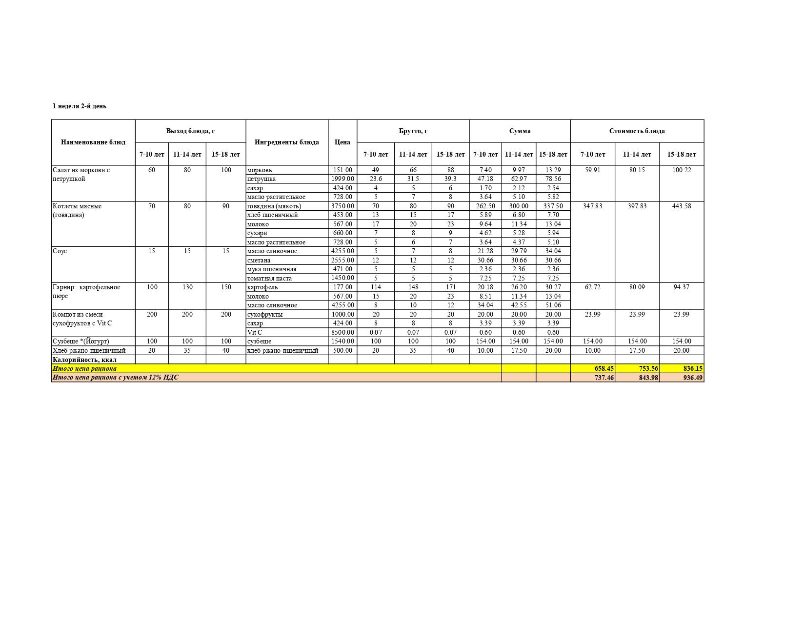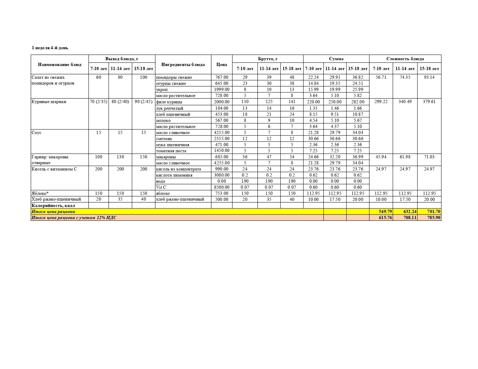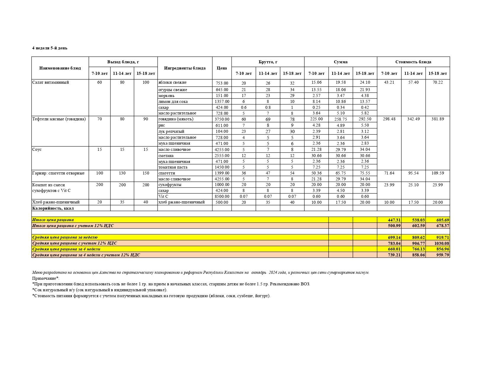 Четырехнедельное меню блюд для оргназиции бесплатного питании обучающихся в организациях среднего образования за счет бюджетных средтсв зима-весна2024