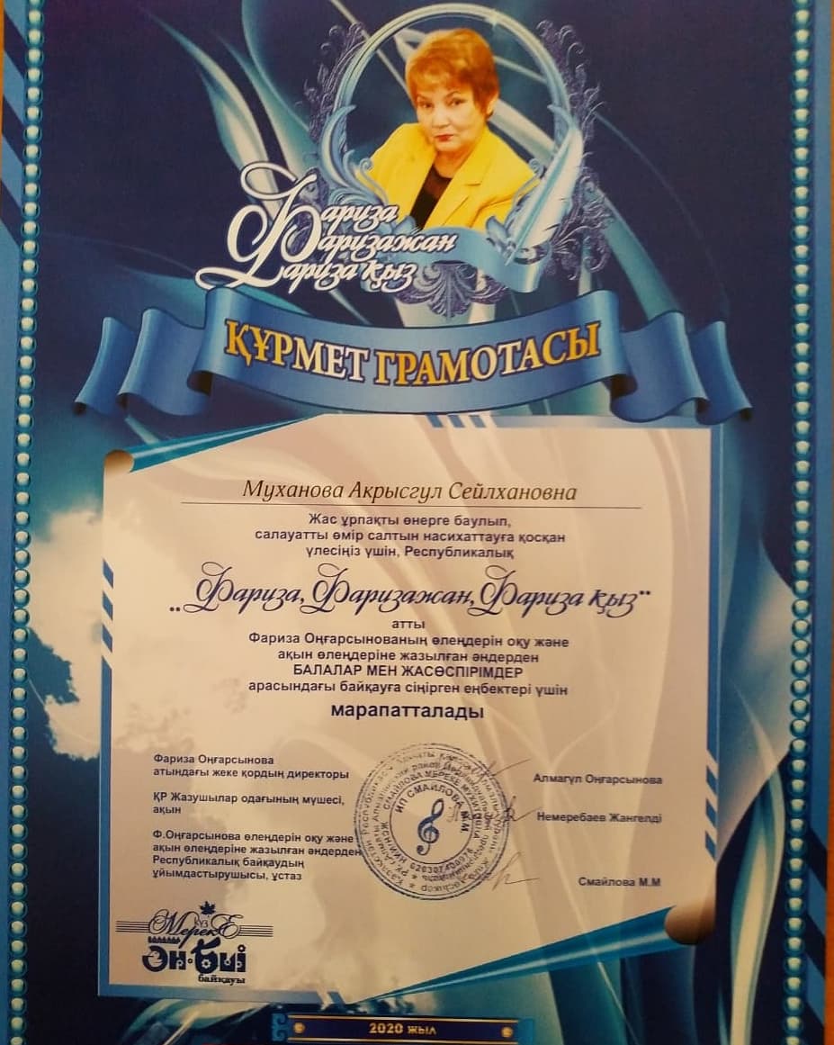 P. S: аталған байқауды Фариза Оңғарсынова атындағы қор ұйымдастырған.