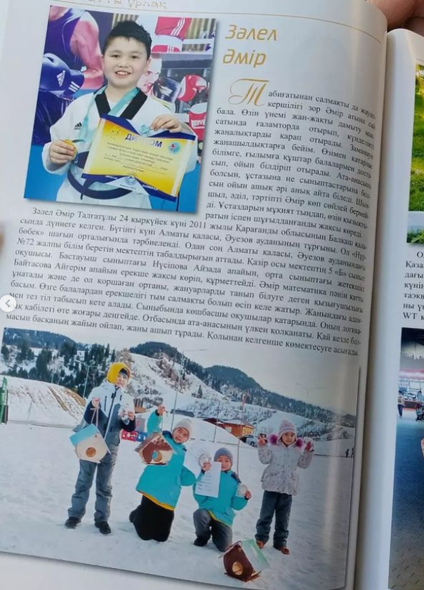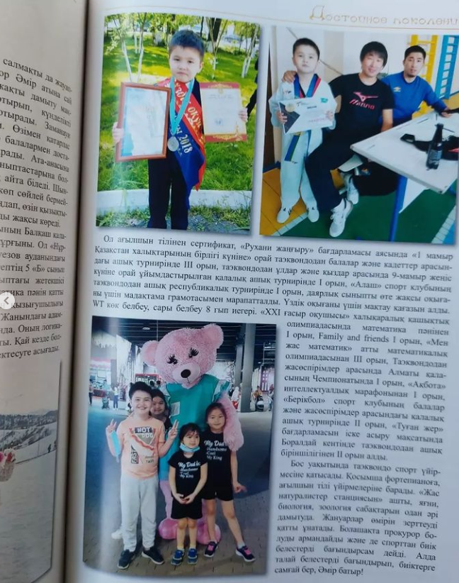 Мектебіміздің 5 "Б" сынып оқушысы Зәлел Әмір "Ұлағатты ұрпақ—Достойное поколение" атты дарынды балалардың энциклопедиялық жинағына шықты. Әмір— таеквондадан республикалық турнирлердің жеңімпазы және ағылшын тілі, математика пәндерінен өткен олимпиадалар мен конкурстарда жүлделі орын иеленіп жүрген озат оқушы.