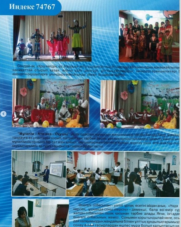 “Оқу-инновациялық технологиялар” ғылыми-әдістемелік журналының №4-5 санына мектеп директорының тәрбие ісі жөніндегі орынбасары Едилова Алтынай Тулеевнаның “Ұлттық құндылықтарды қалыптастырудағы мектеп пен отбасының тәрбиелік мүмкіндіктері” тақырыбындағы мақаласы жарыққа шықты. Сонымен қатар аталған журналдың мұқабасына мектептегі тәрбие үдерісіндегі атқарылған іс-шаралардың суреттері бейнеленген.