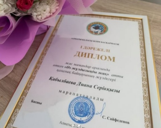 Алматы қаласы Білім басқармасының қалалық білім берудегі жаңа технологиялардың ғылыми-әдістемелік орталығының ұйымдастыруымен өткен жас мамандар арасында “Өз жұлдызыңды жақ” қалалық байқауында мектебіміздің логопеді Қабылбаева Диана Серікқызы І 🥇 дәрежелі дипломмен марапатталды. Жеңісімен шын жүректен құттықтаймыз!