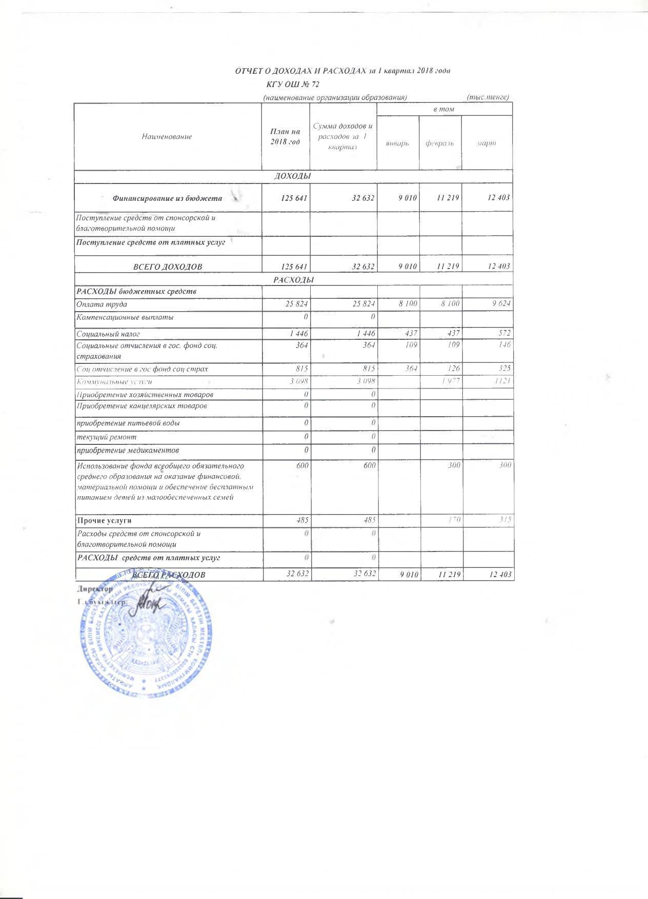 Отчет о доходах и расходах ха 3 квартал 2018 года
