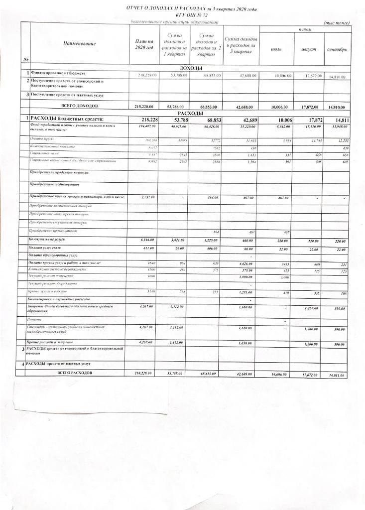 » Кіріс және шығыс IІІ квартал 2020 жыл