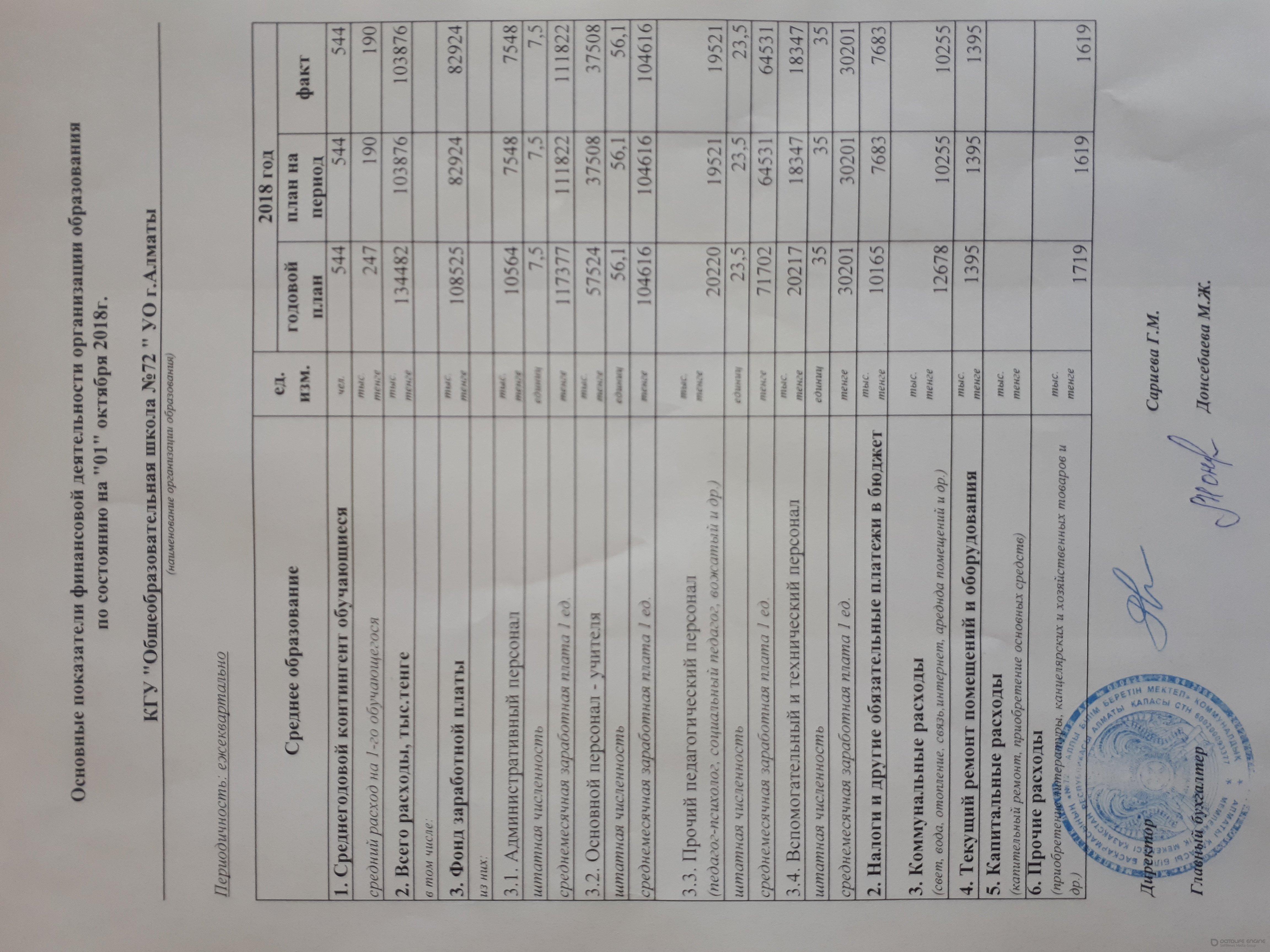 » » Основные показателей финансовой деятельности организации образования по состоянию на "01" октября 2018 г