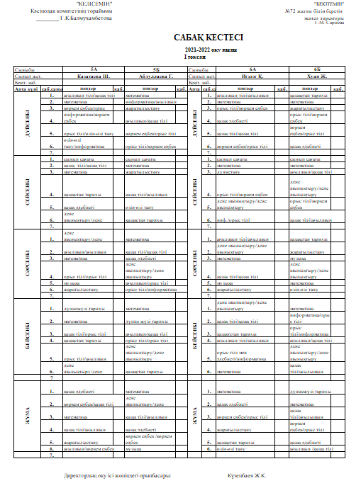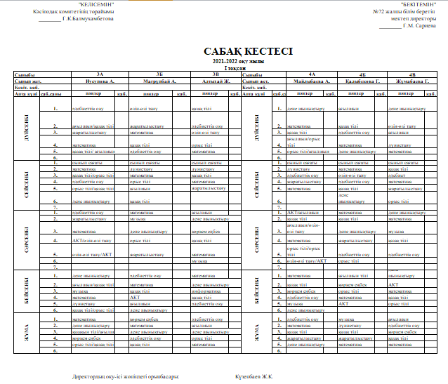 Сабақ кестесі 01.09.2021