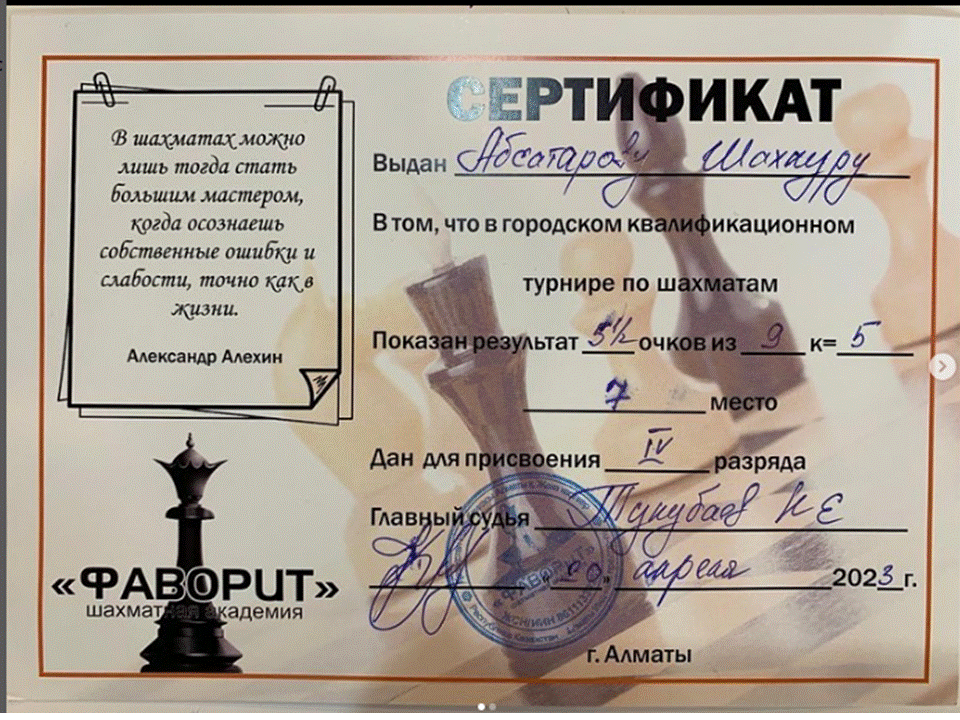 30 апрель 2023 0 1 2 3 4 5 «Фаворит» шахмат академиясының ұйымдастыруымен өткен қалалық шахматтан біліктілік турнирі