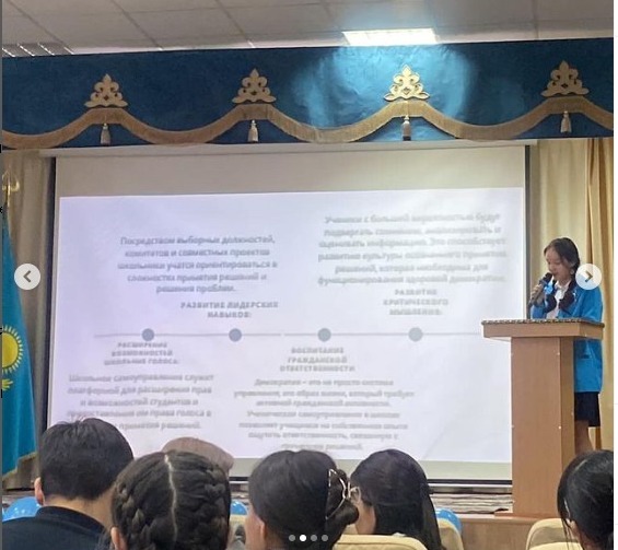 Аталған слетқа мектебіміздің Өзін-өзі басқару ұйымының Президенті Сайлаухан Аянат қатысып қайтты.