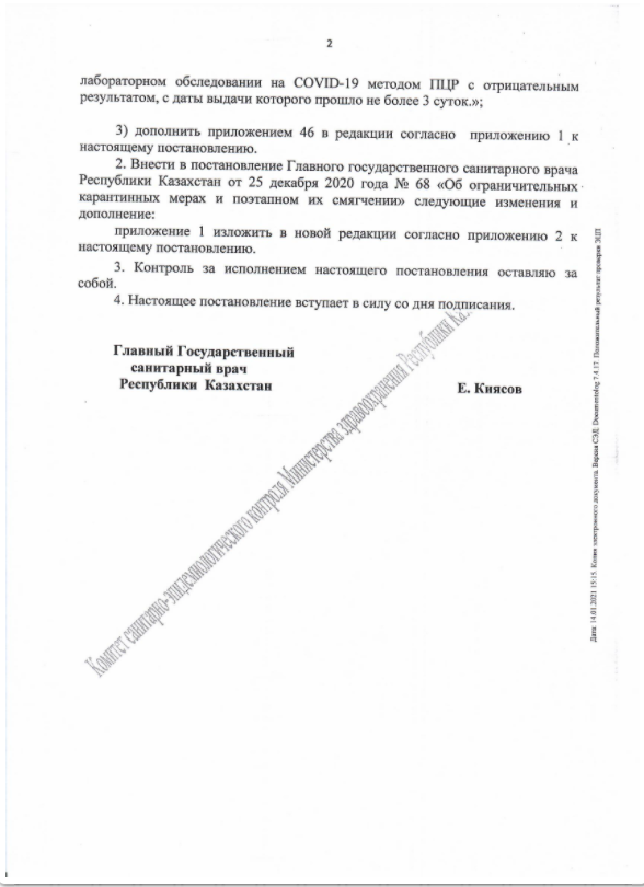 » Постановление главного санитарного врача №2 от 14.01.2021 рус