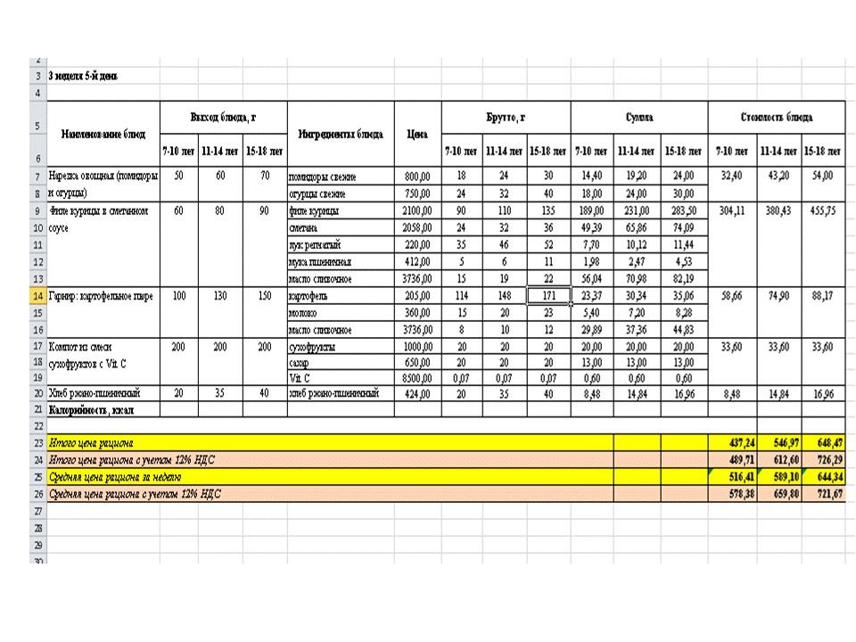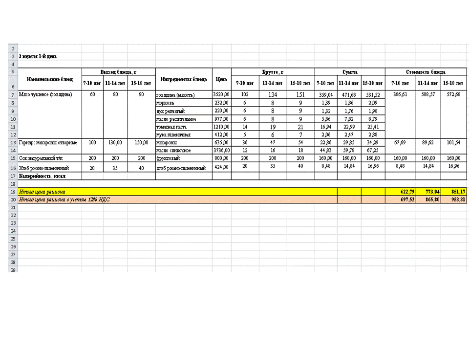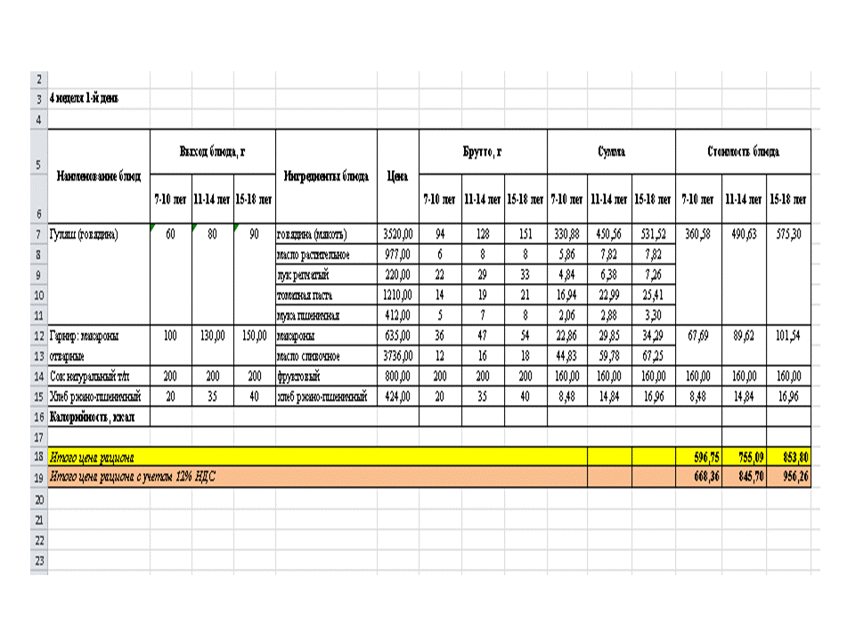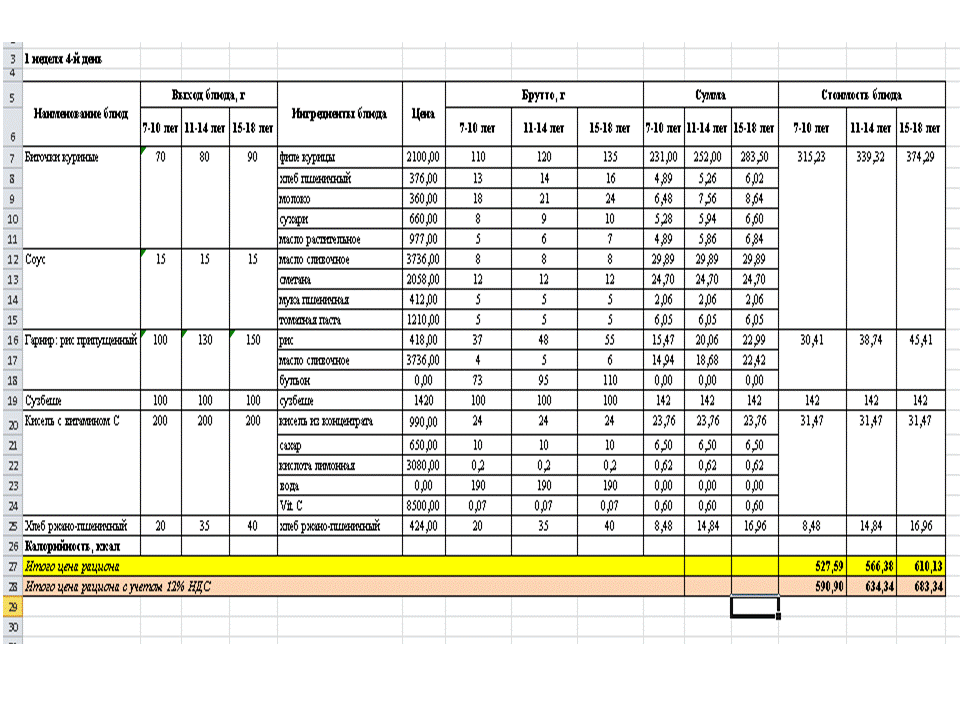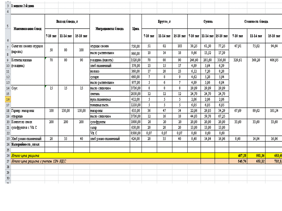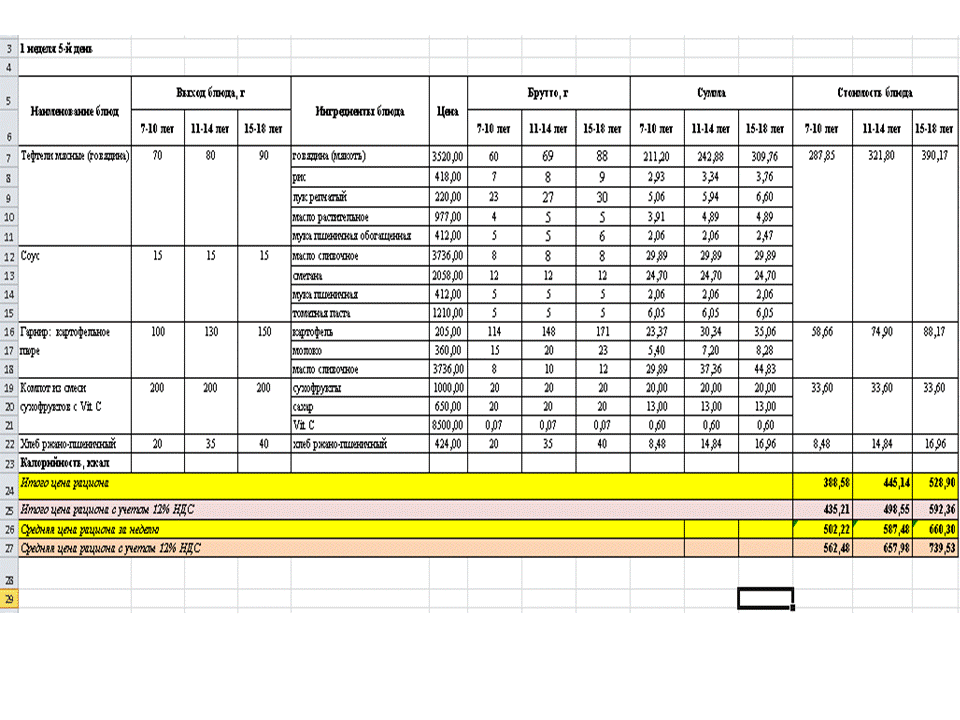 Меню. 1 апта