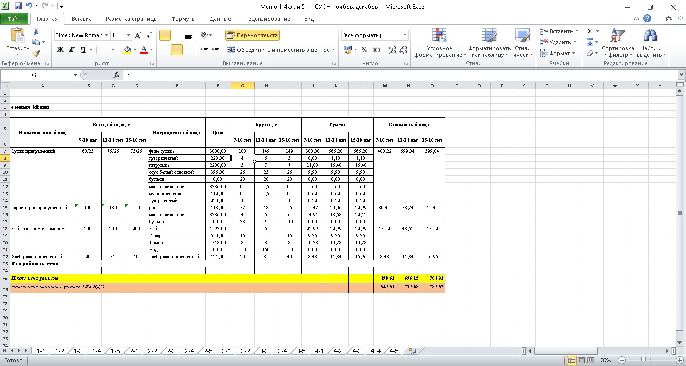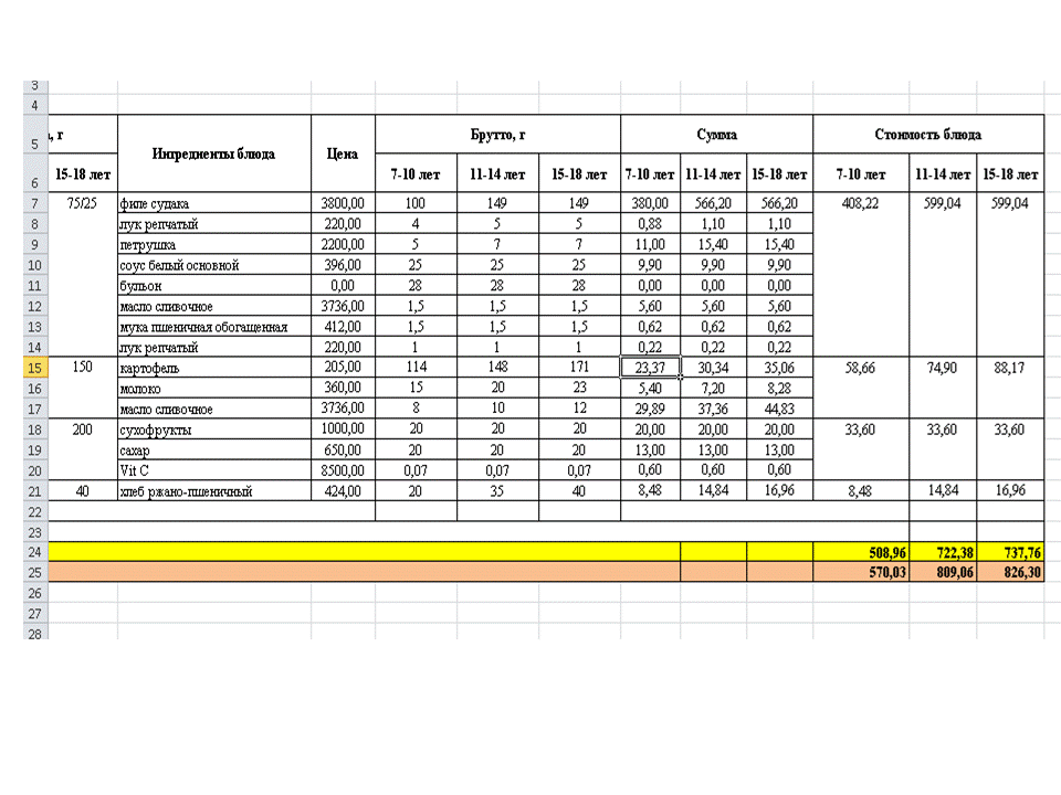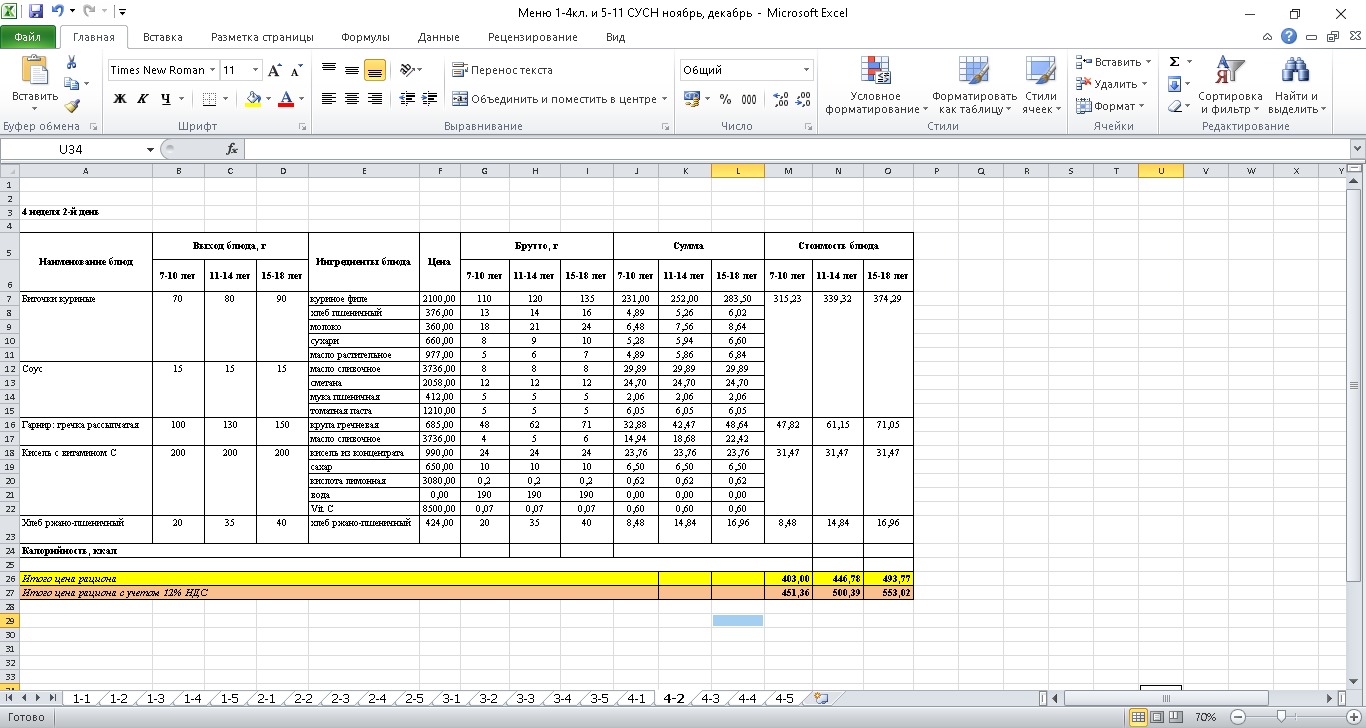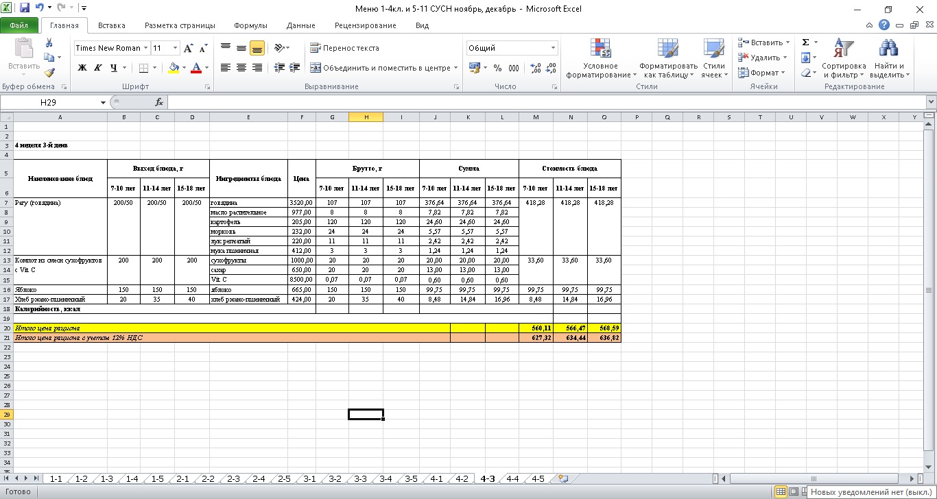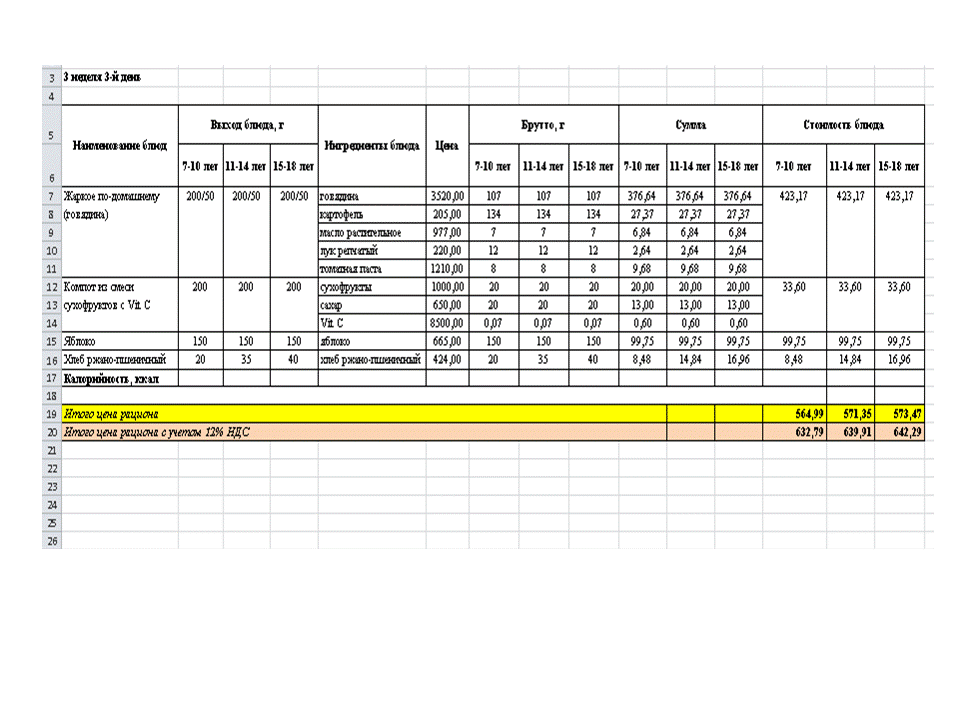 Меню. 1 апта