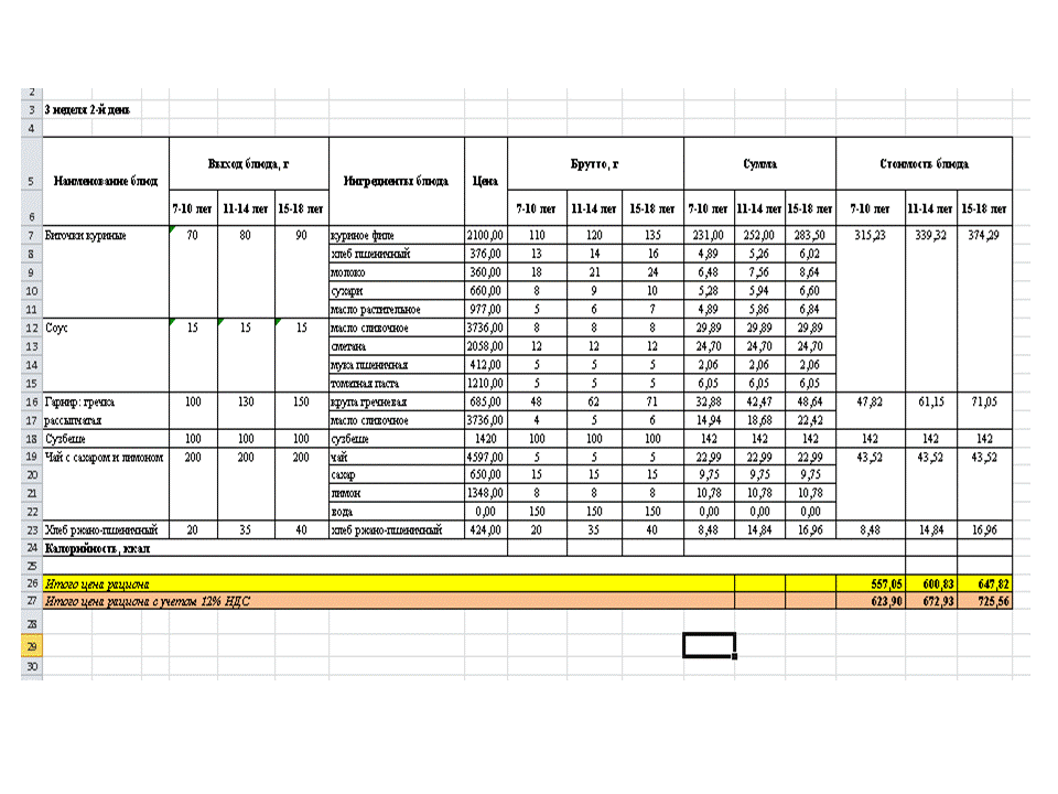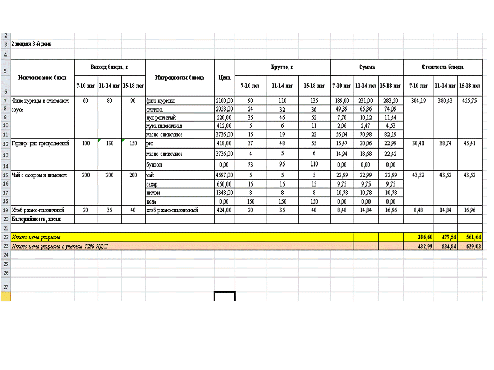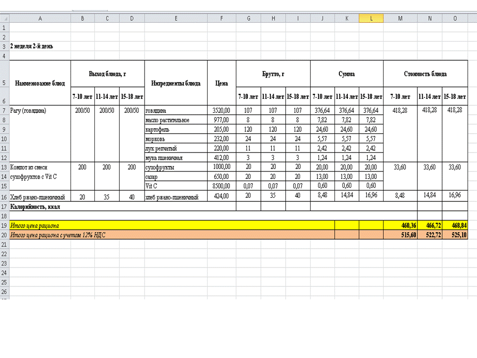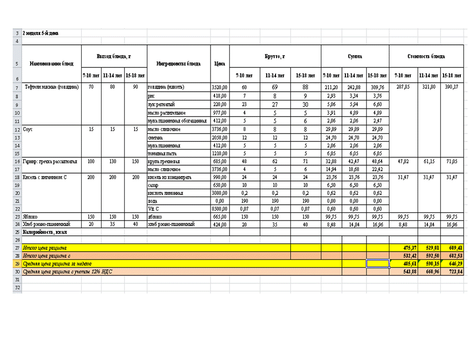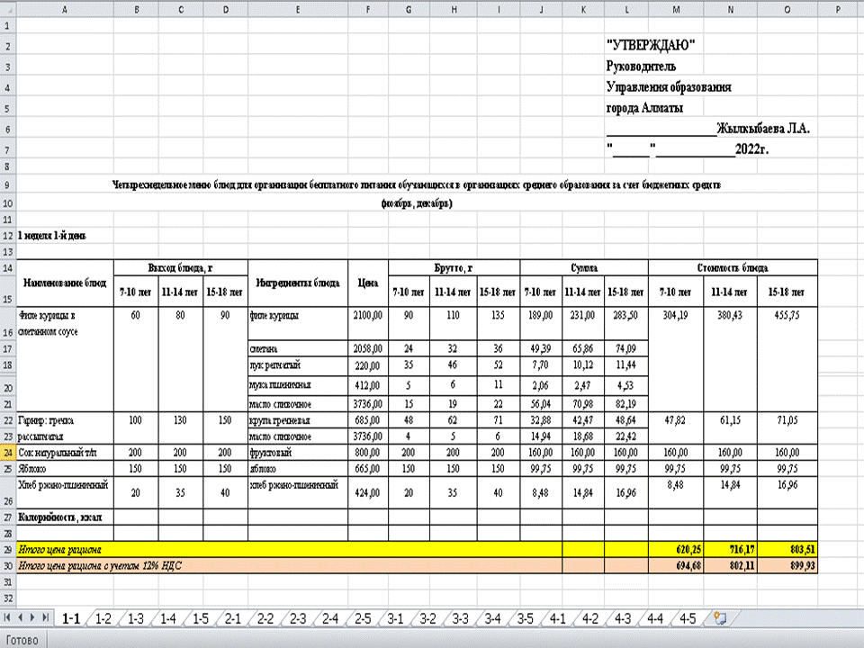 МЕНЮ 2 апталық.