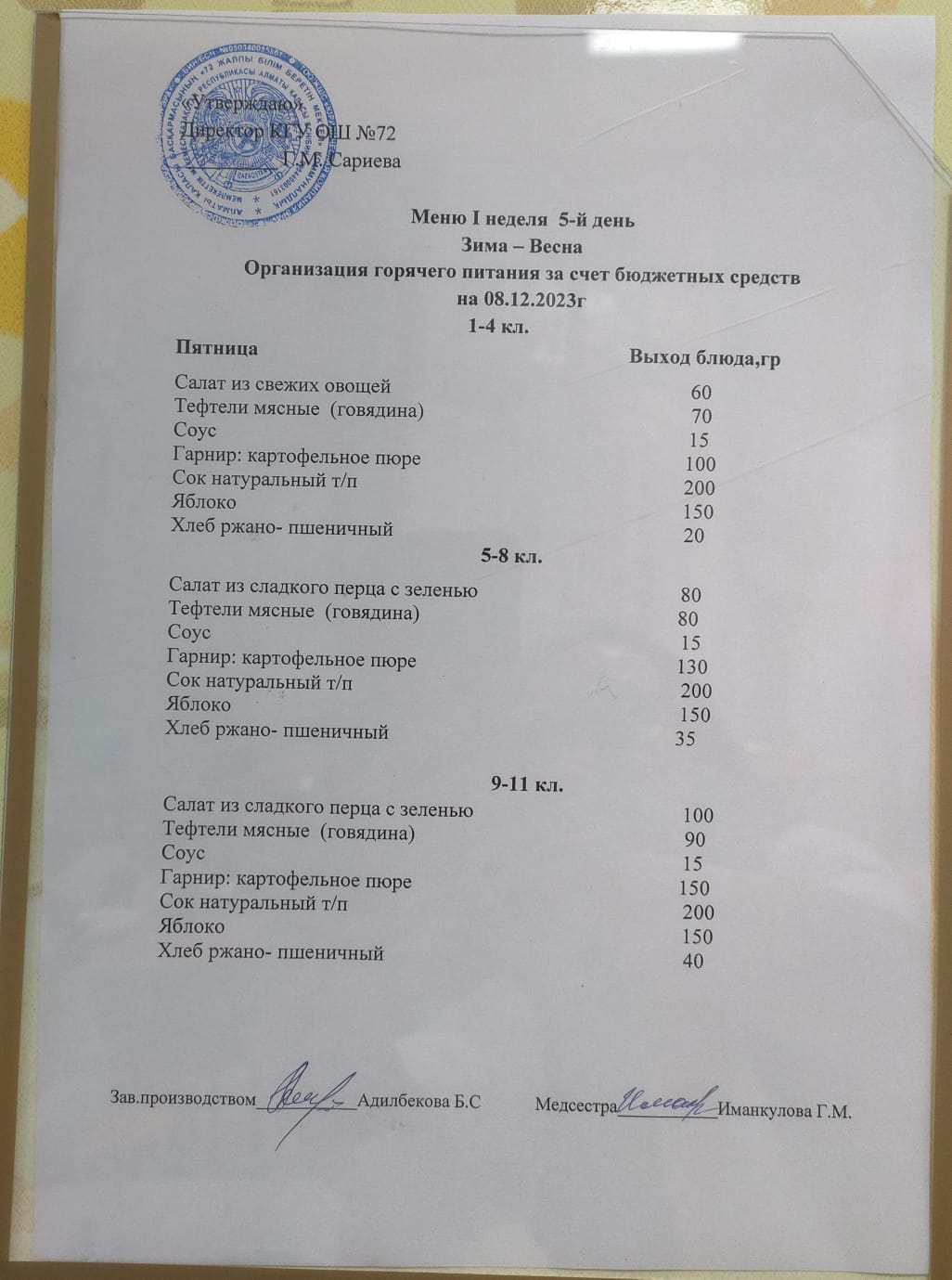 Ас мәзірі. 08.12.2023ж