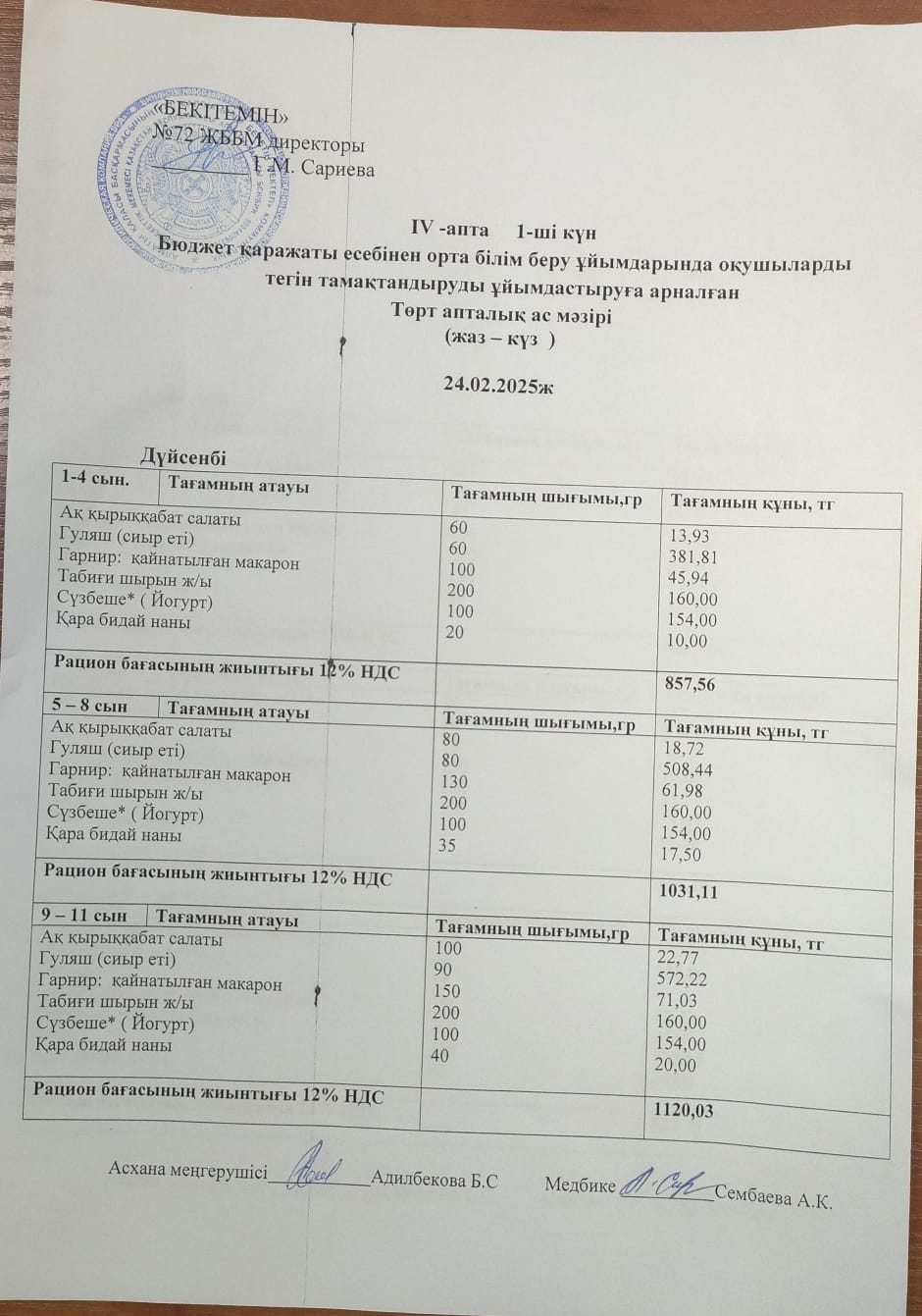 » Ас мәзірі 24.02.2025ж