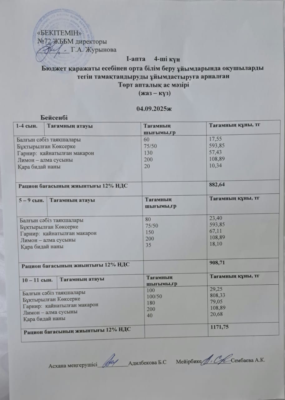 Ас мәзірі. 04.09.2025 ж. (1-апта, 4-күн)