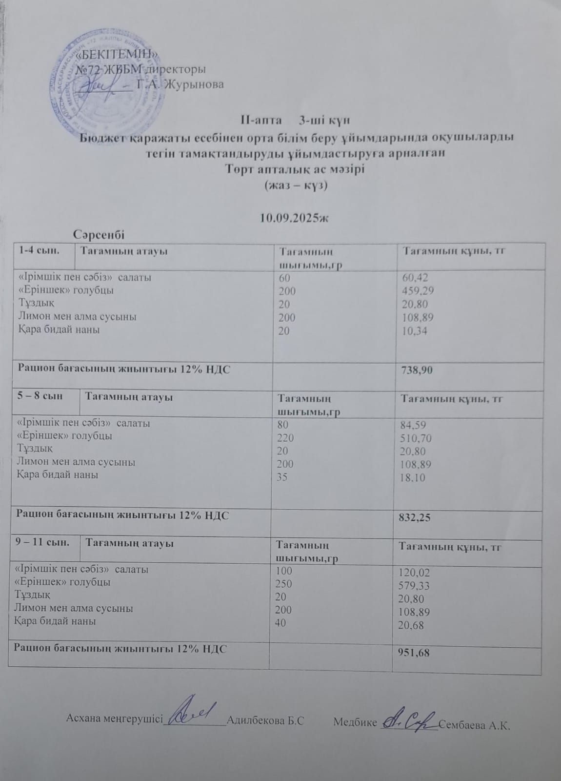 Ас мәзірі 11.09.2025ж. (2-апта, 4-күн)