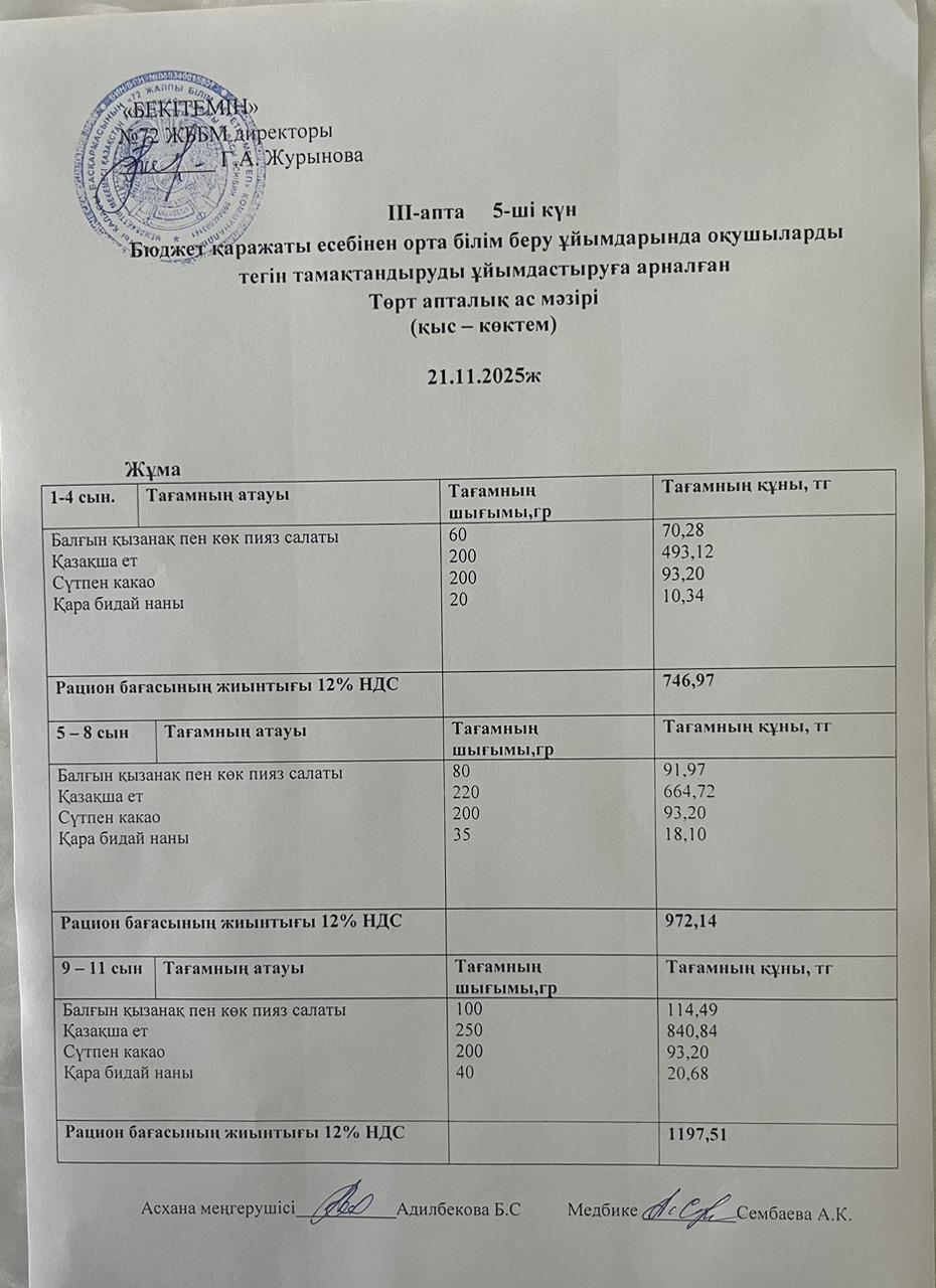 Ас мәзірі 20.11.2025ж (3-апта,4-күн)