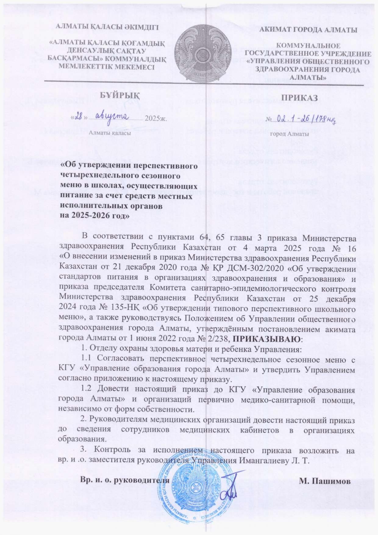 01 сентябрь 2025 0 1 2 3 4 5 2025-2026 оқу жылына арналған төрт апталық маусымдық перспективалық мәзірді бекіту туралы