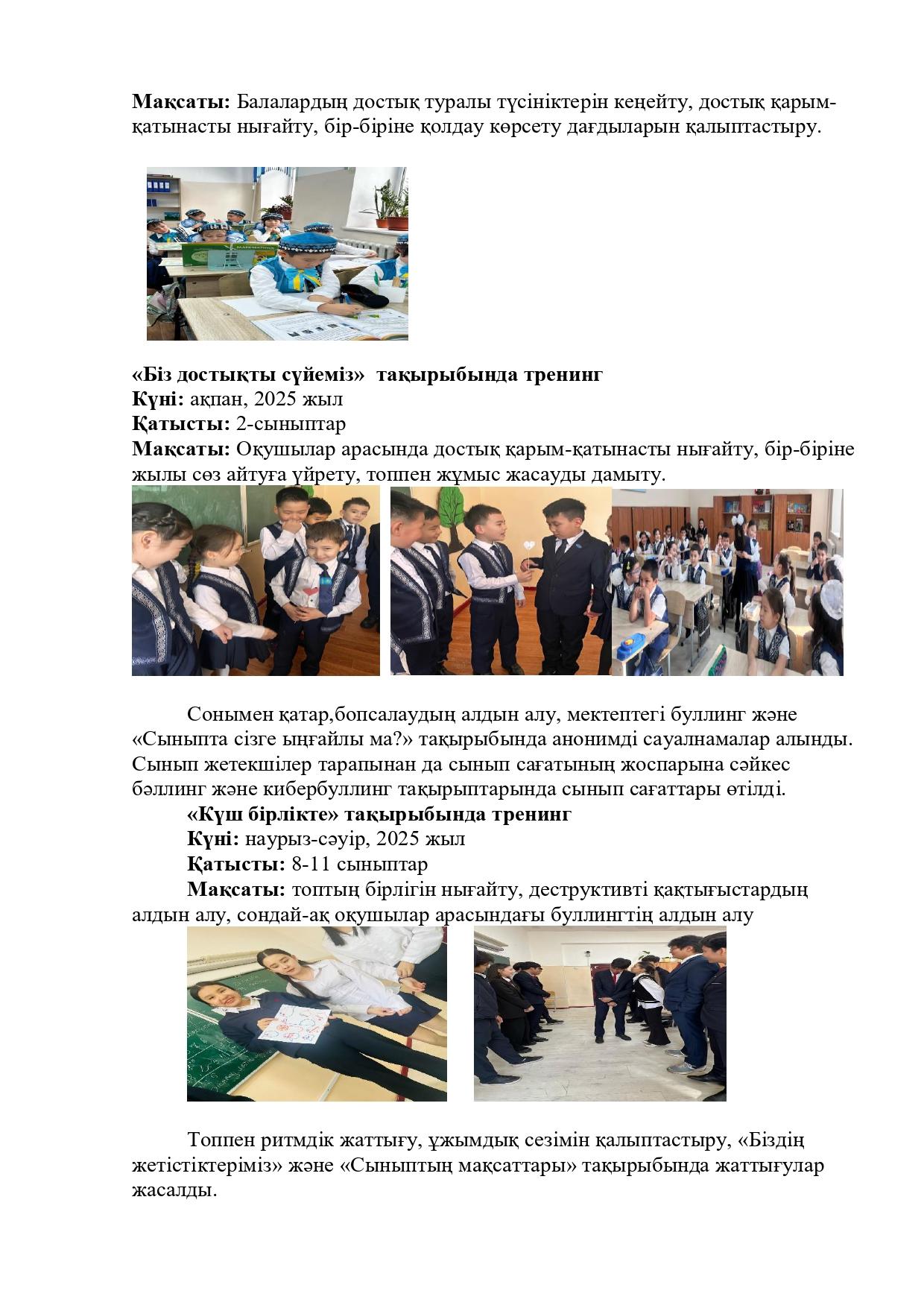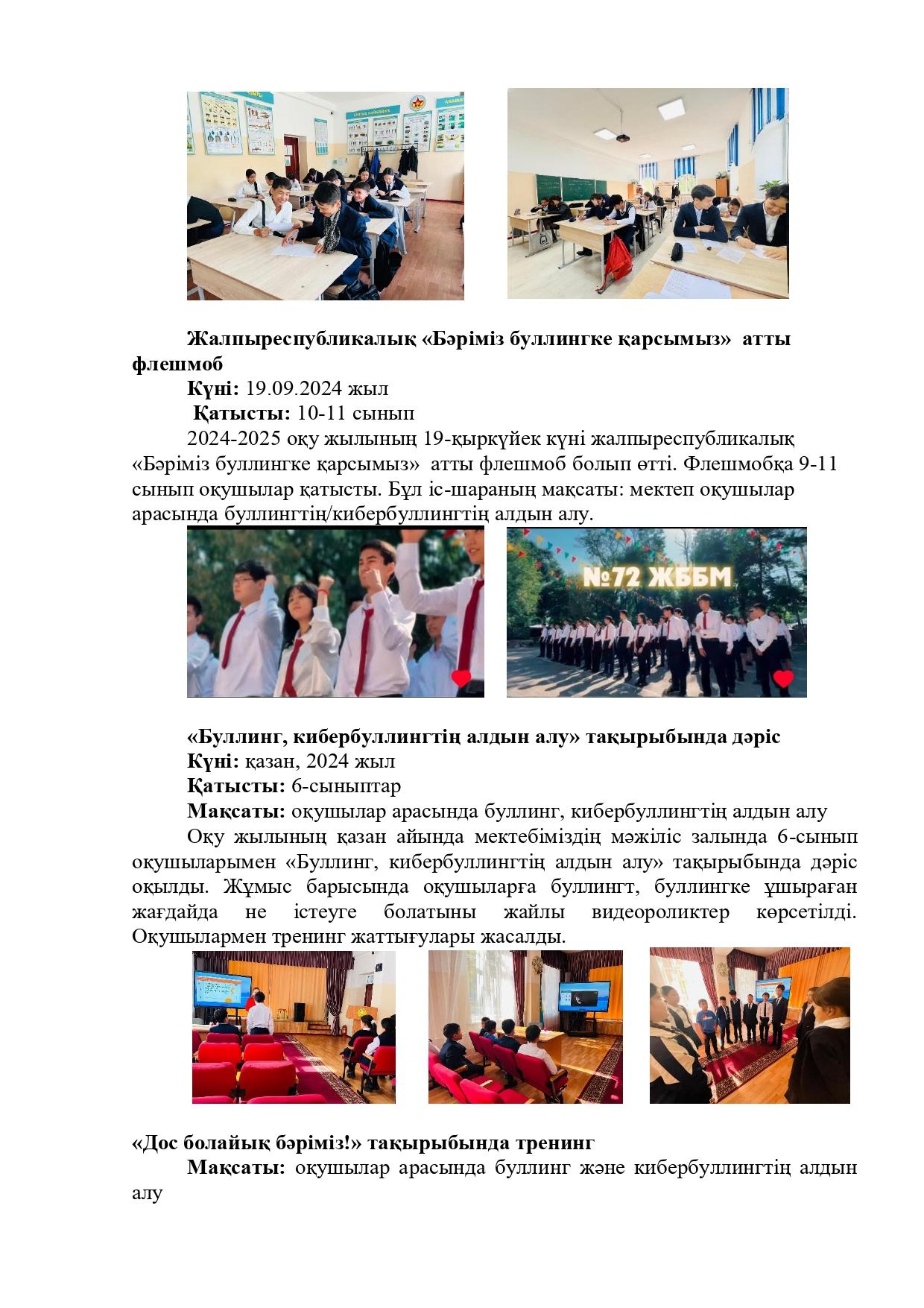 06 май 2025 0 1 2 3 4 5 Алматы қаласы №72 жалпы білім беретін мектепте буллинг және кибербуллингтің алдын алу бойынша жүргізілген жұмыс