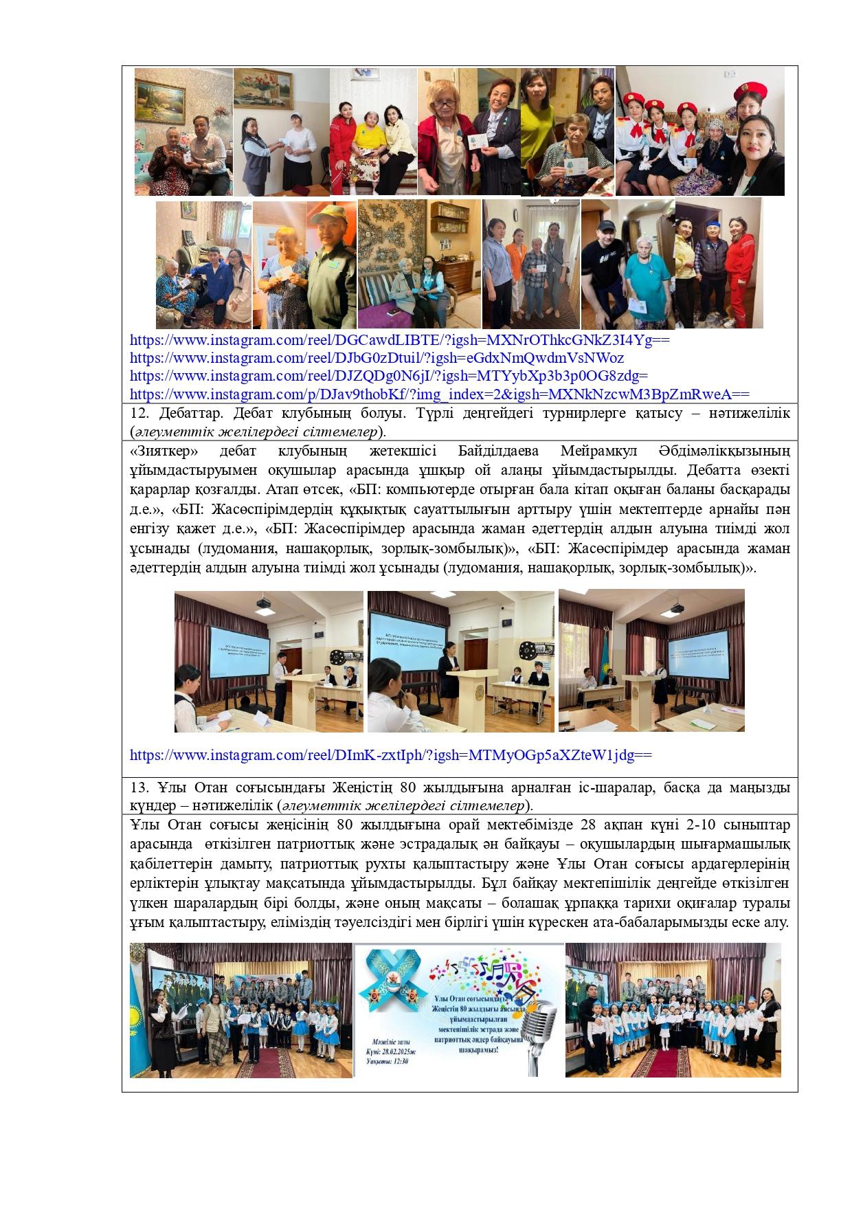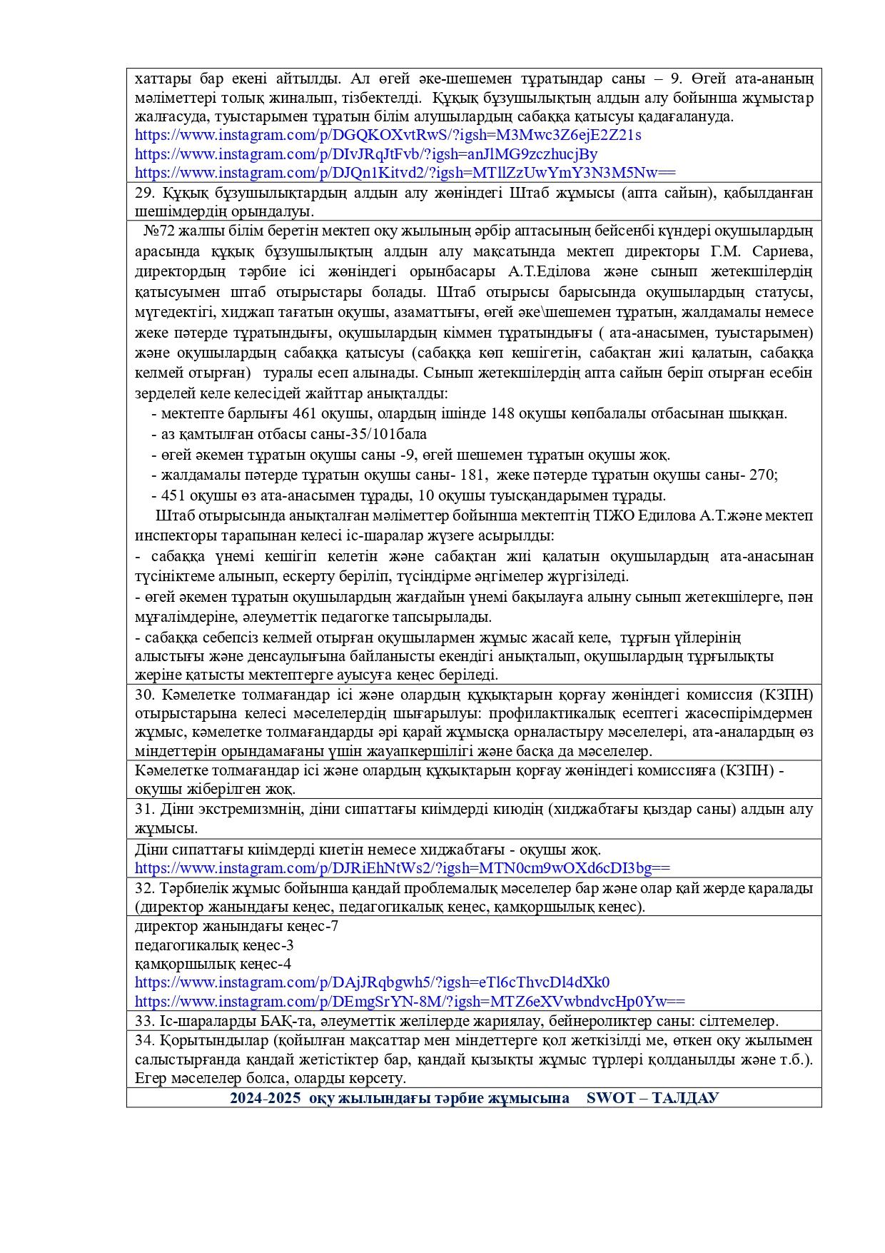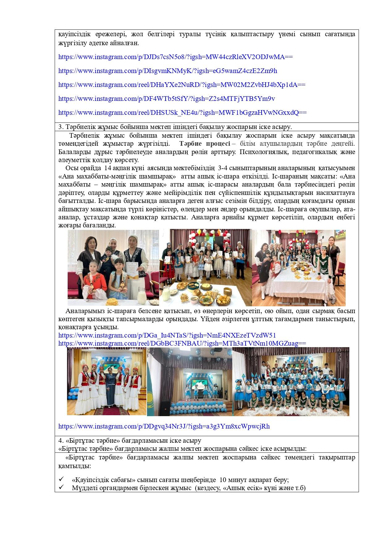 02 июнь 2025 0 1 2 3 4 5 №№72 ЖАЛПЫ БІЛІМ БЕРЕТІН МЕКТЕПТІҢ 2024–2025 ОҚУ ЖЫЛЫНА АРНАЛҒАН ТӘРБИЕ ЖҰМЫС БОЙЫНША ЕСЕБІ